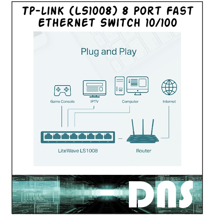 Tplink TP-Link / (LS1008) 8 Port Fast Ethernet Switch 10/100 / SWITCH HUB / ETHERNET HUB