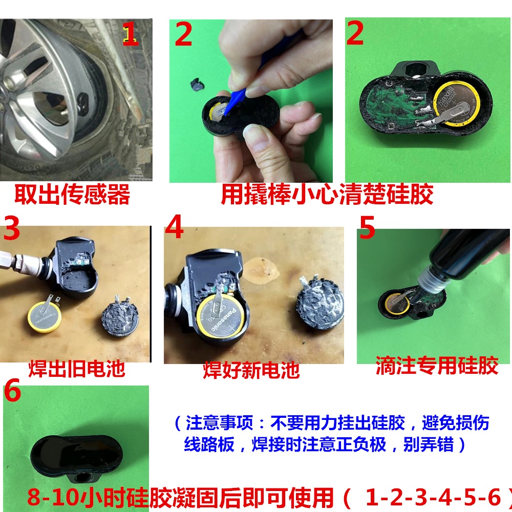 Tpms tire pressure monitor built-in sensor battery DIY replacement kit (RC2032 battery+special silicone)