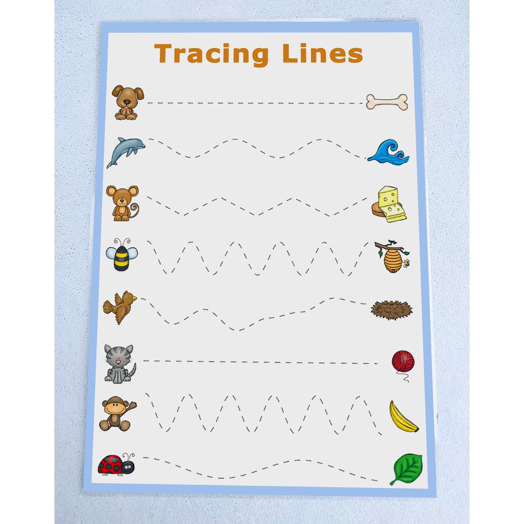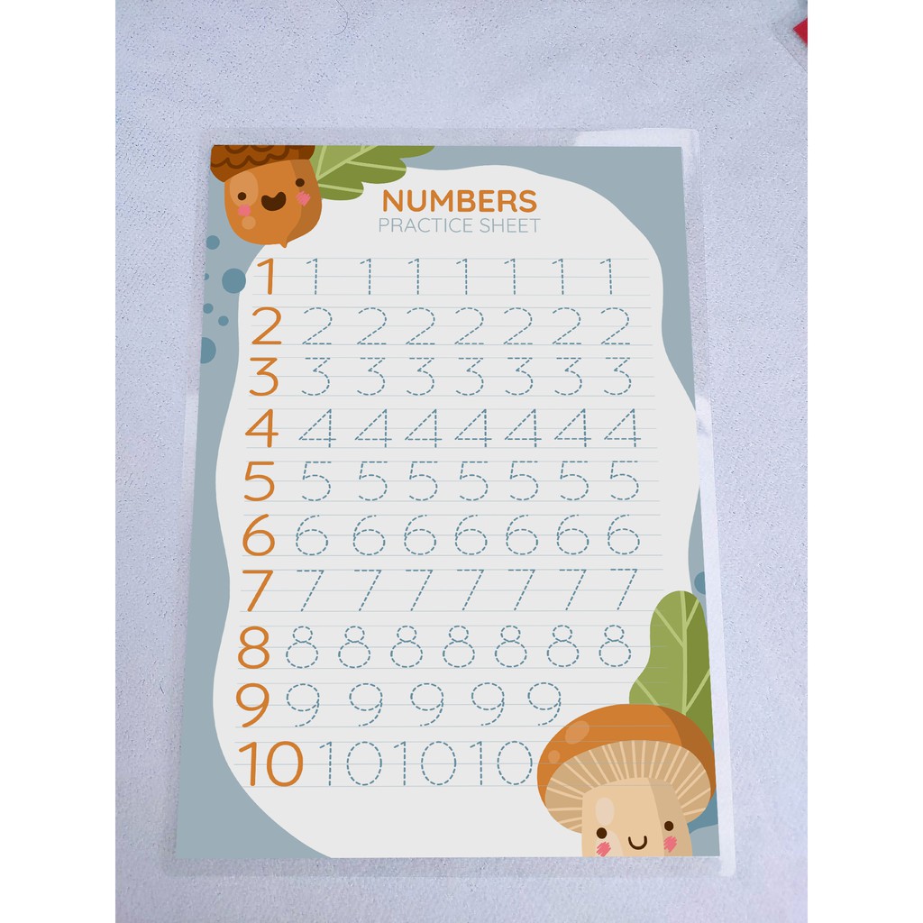 Tracing Name, Lines, Alphabet, Shape, Numbers and Marker Pens and Rings, Erasable Laminated A4 size