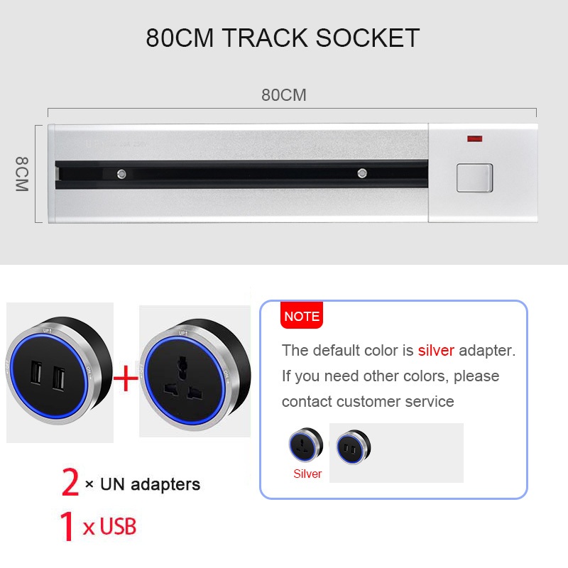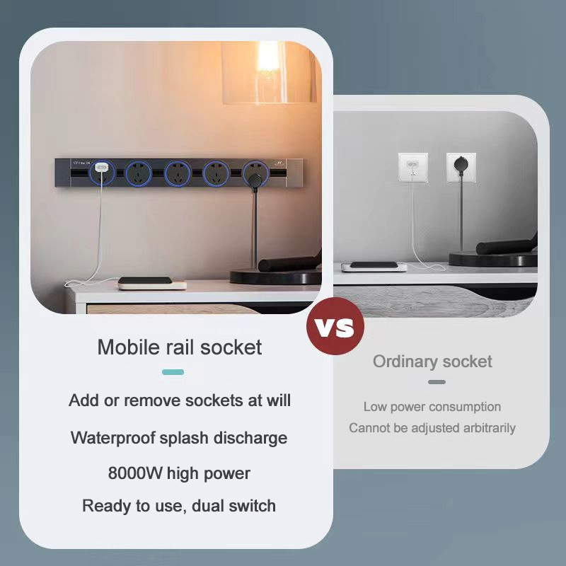 Track Socket Movable Power Track Outlet 8000W Wall Outlet Adapter for Kitchen/Office USB Socket