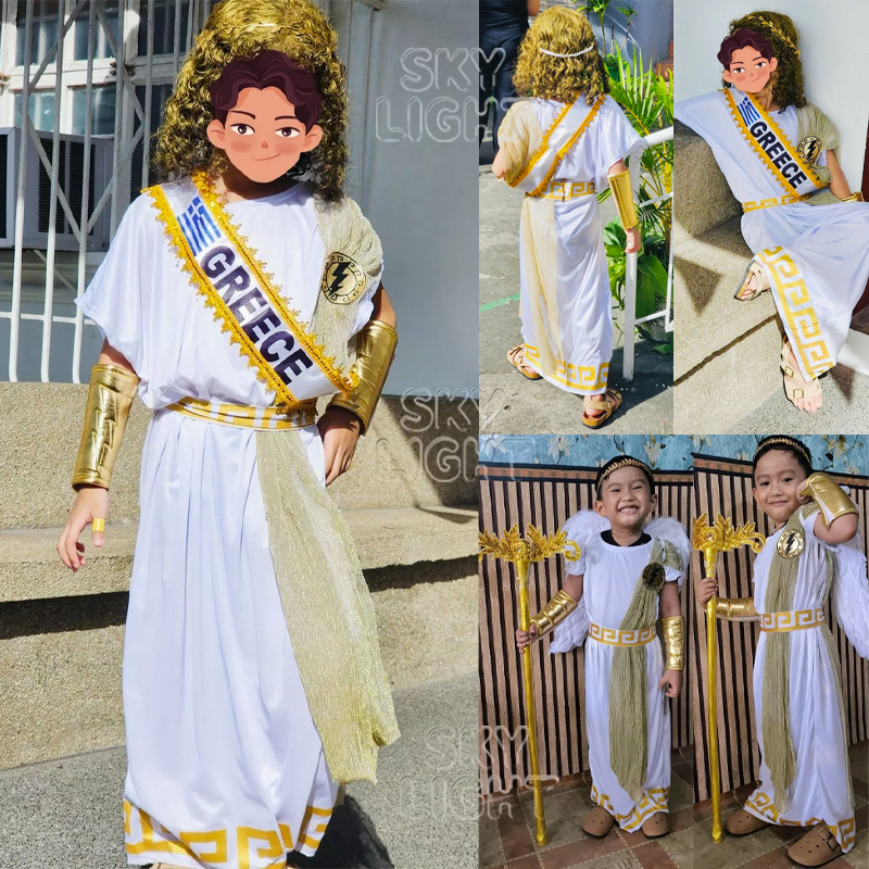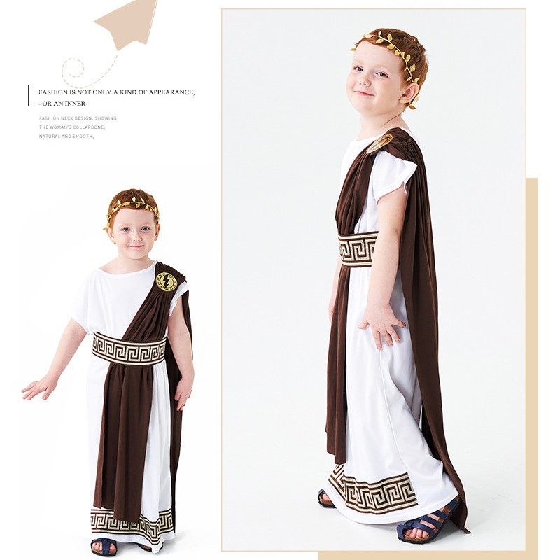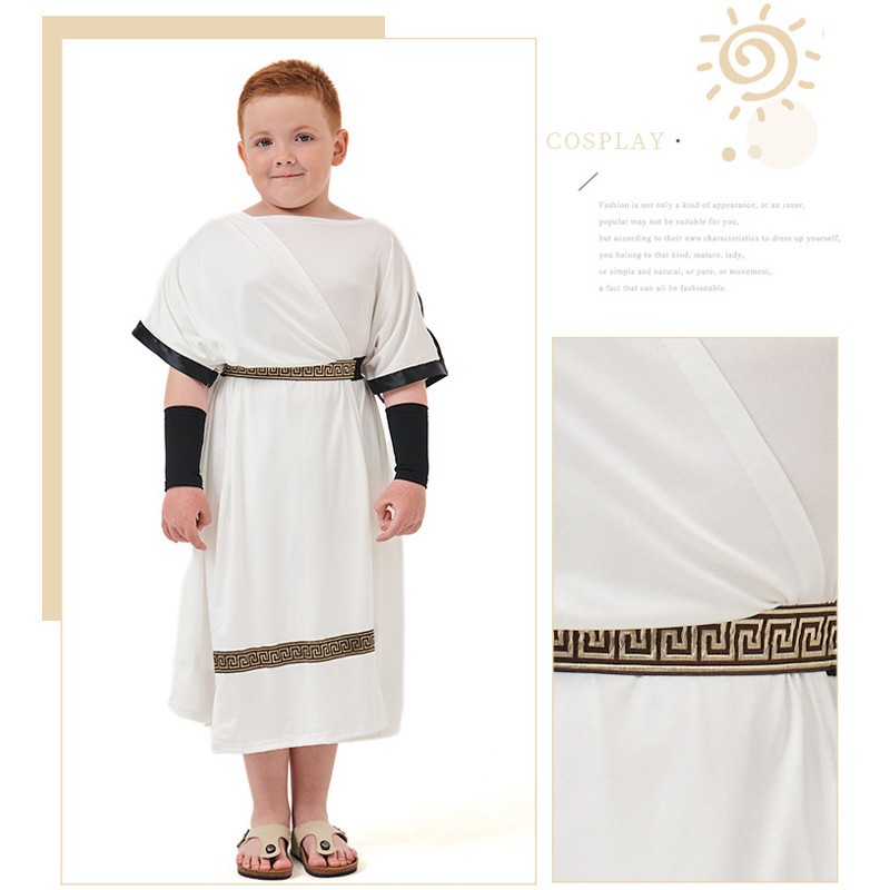 Traditional Greek God Zeus Cosplay Costume For Kids Boy Long White Cape Christmas Halloween Party Outfits Boys Clothes Set