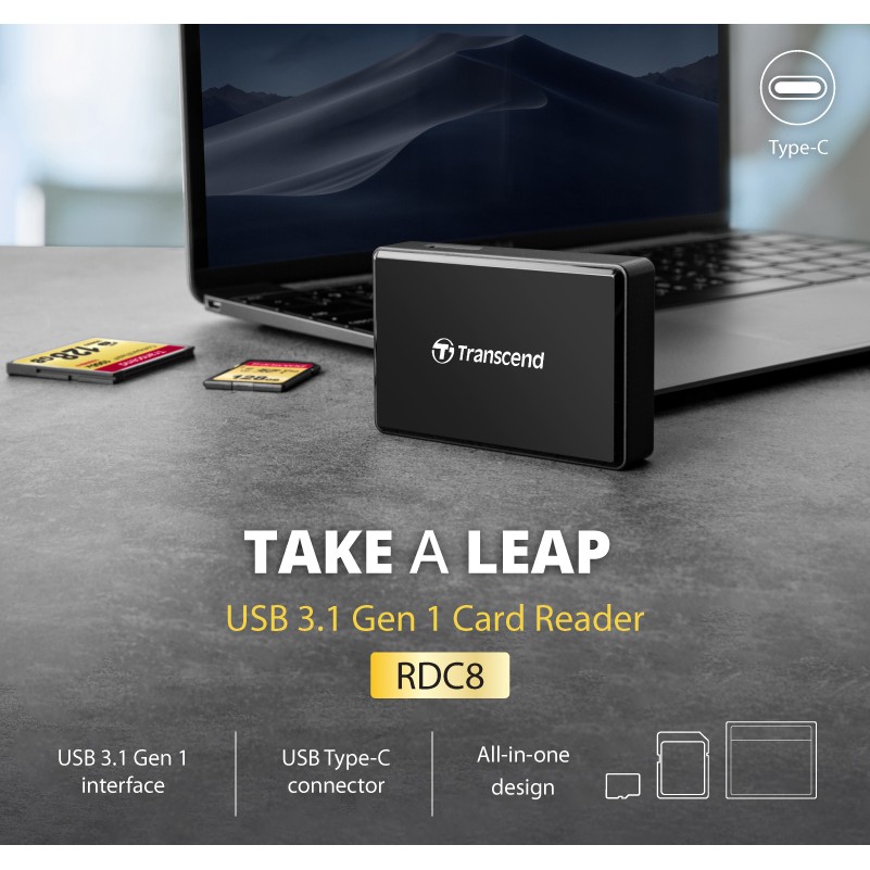Transcend (RDC8) All-in-1 Multi Memory Card Reader, USB 3.1 Gen 1, Type C