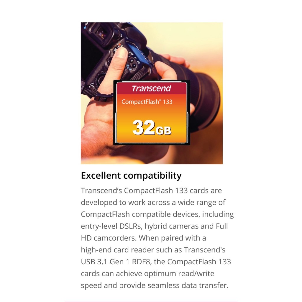Transcend 133x 2GB/4GB/8GB/16GB/32GB Compact Flash Card