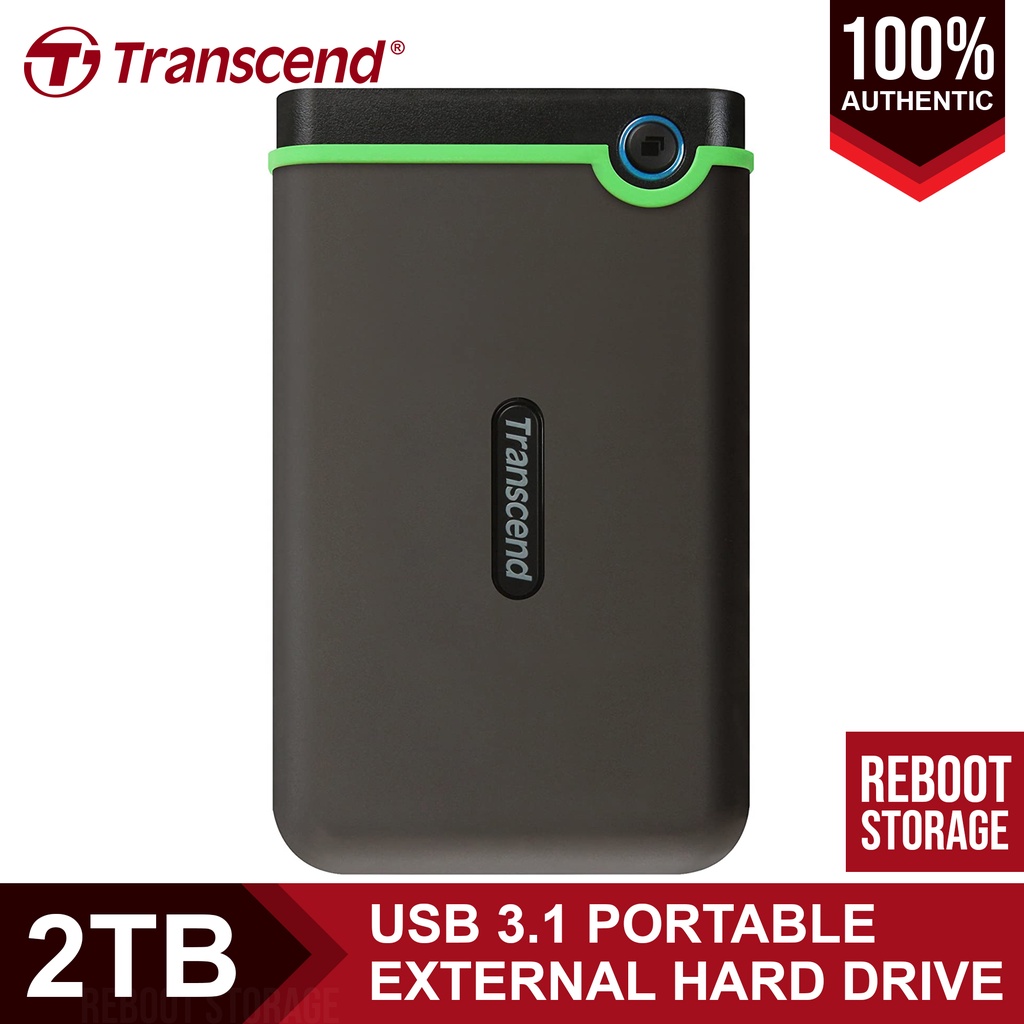 Transcend 25M3 2TB StoreJet Ruggedized Portable External Hard Drive Shock-resistant USB 3.1 Gen 1