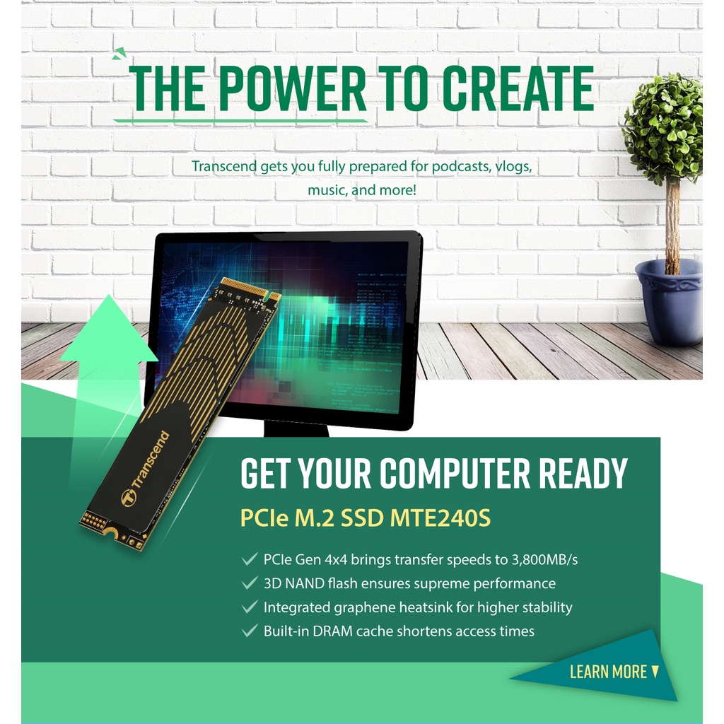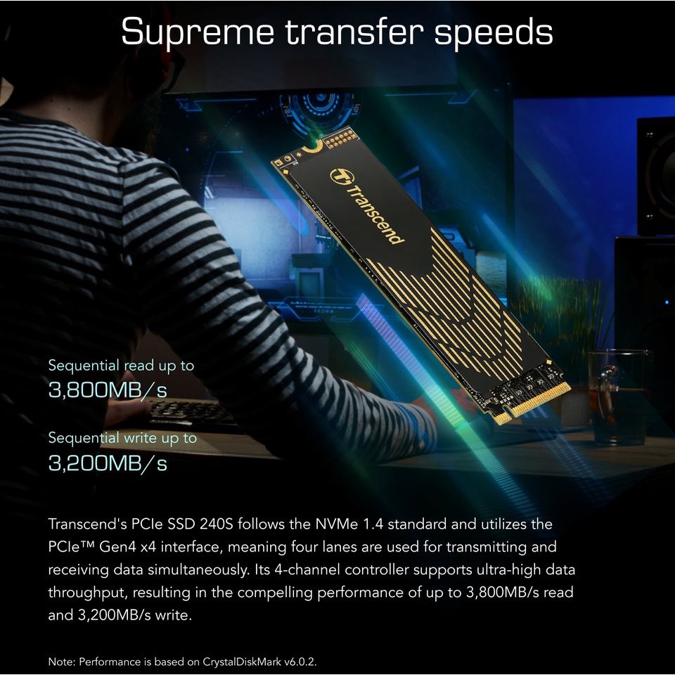 Transcend 500G/1TB PCIe NVME Gen4 x4 SSD, MTE240S (Graphene Heatsink SSD Compatible with PS5)