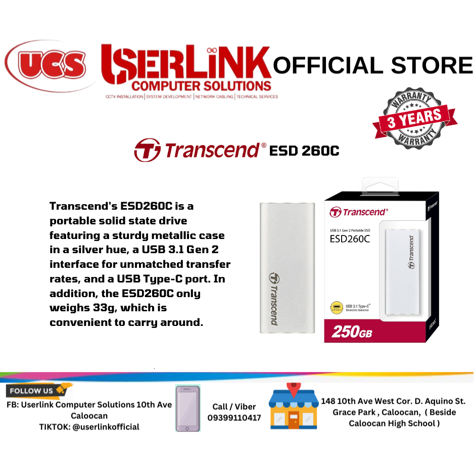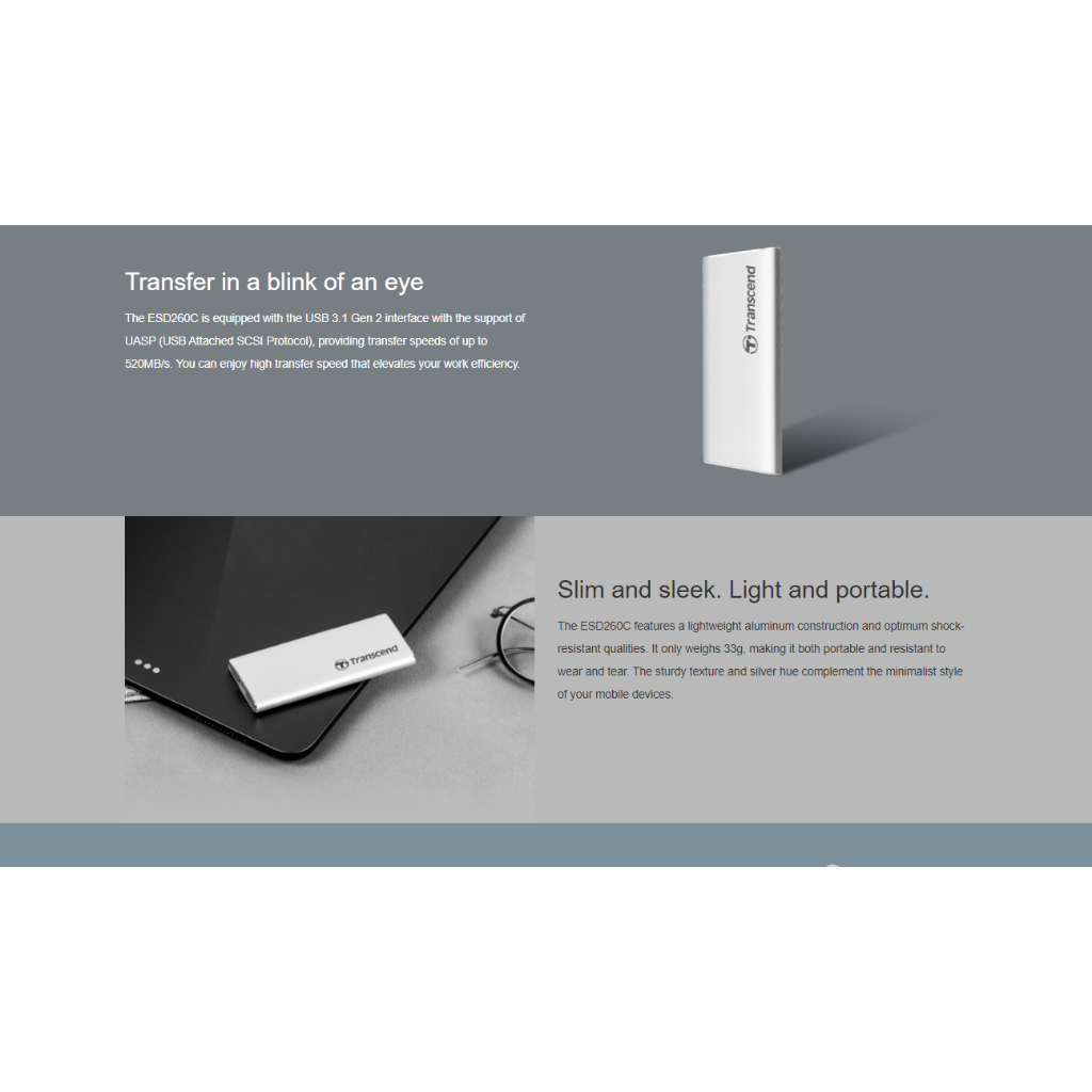 Transcend ESD 260C Usb 3.1 Type-C Gen 2 Portable SSD 250GB & 1TB