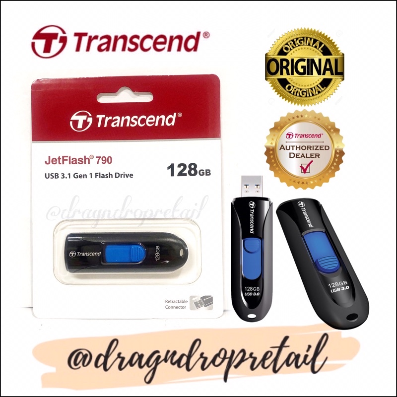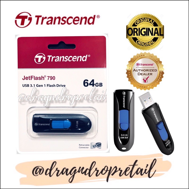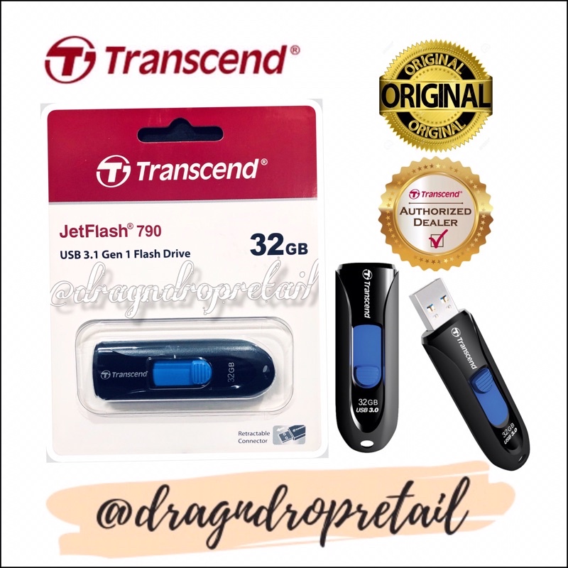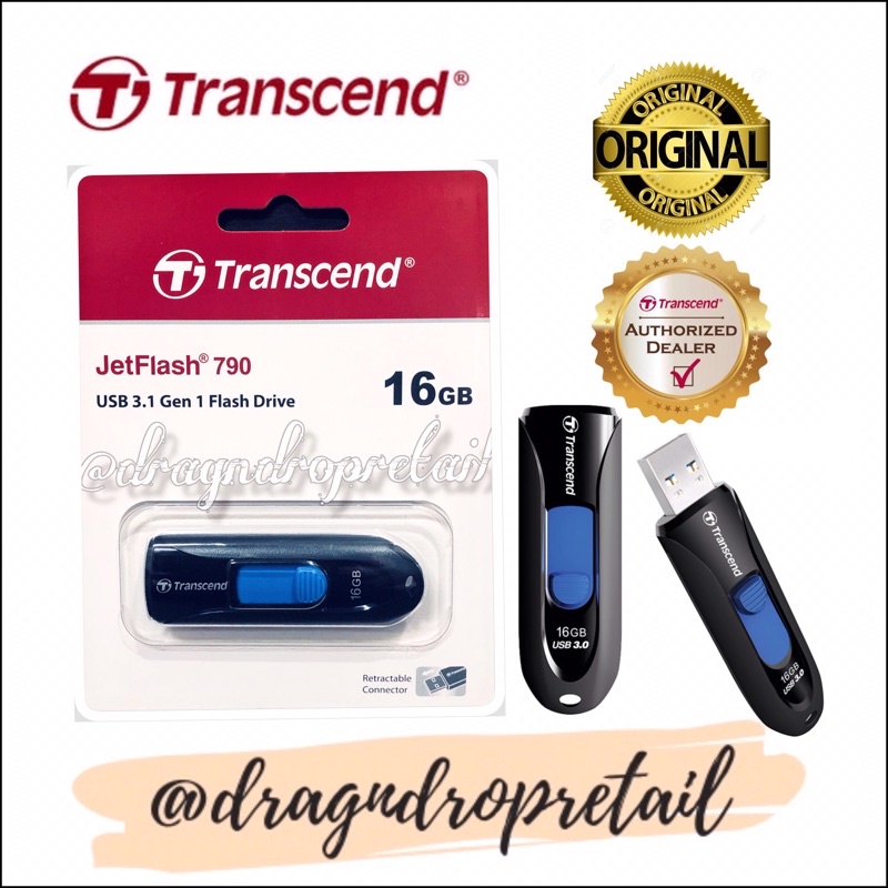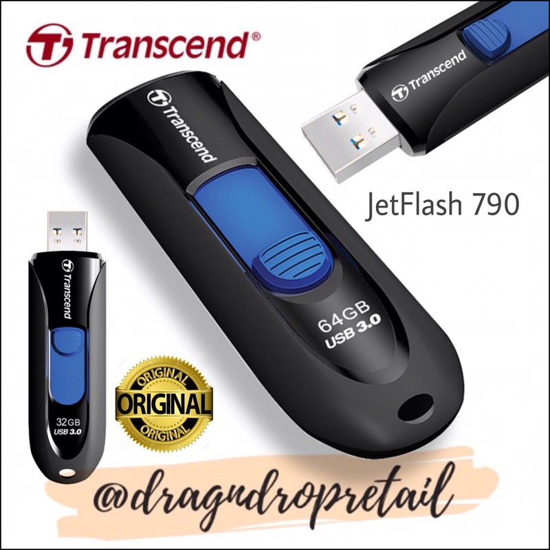 Transcend JetFlash 790 USB 3.0 Flash Drive 64GB 32GB 16GB JF790 (Black)