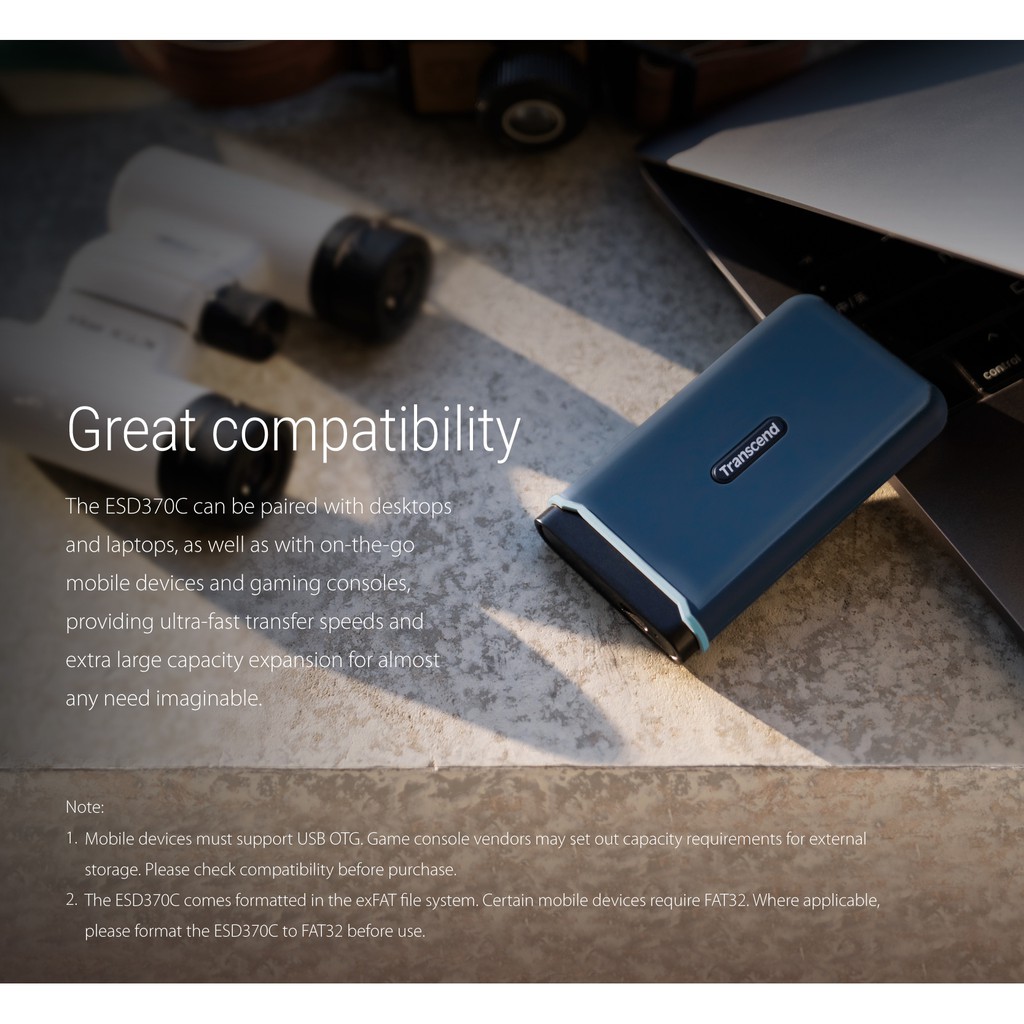 Transcend Portable SSD ESD370C 250G/500G/1TB Up to 1050MB/s