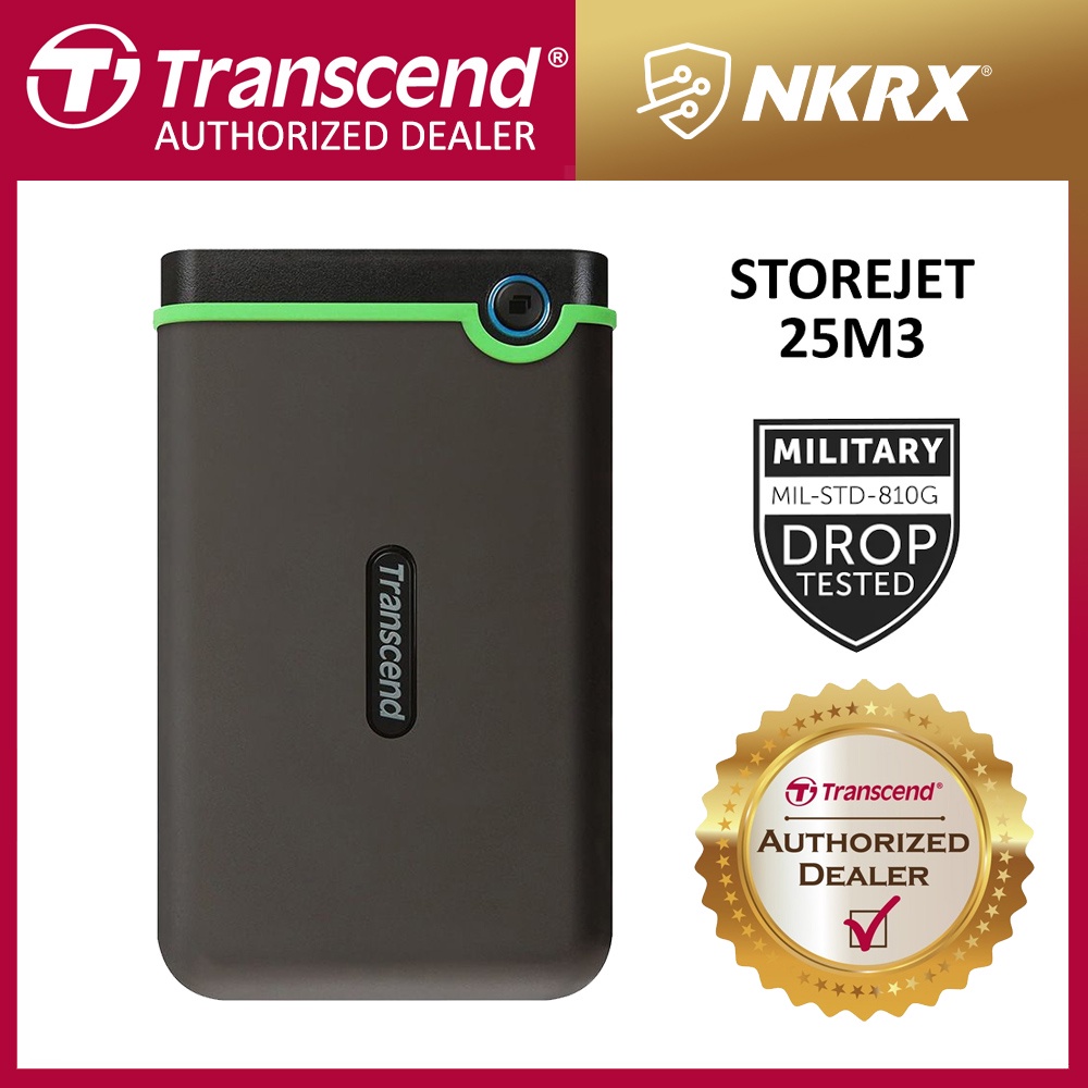Transcend Storejet 25M3 25H3 1TB 2TB Portable Shockproof Hard Drive