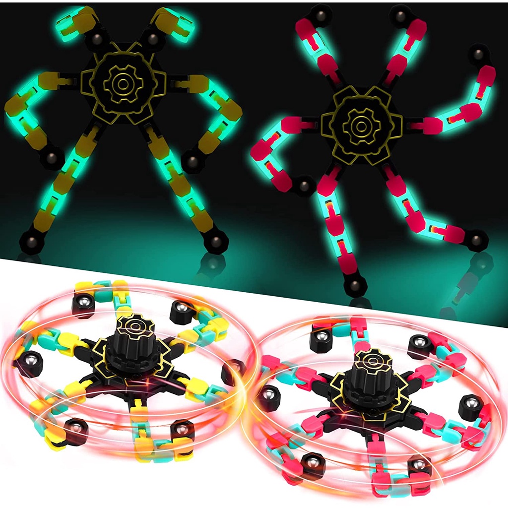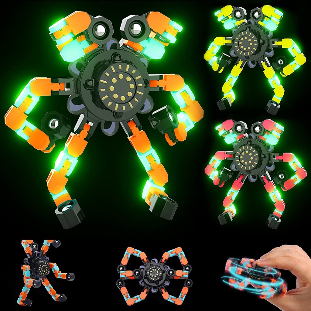 Transformable Chain Robot Finger Toy Luminous Deformation Mechanical Spinners Twister Fingertip Stress Relief Gyro Toy