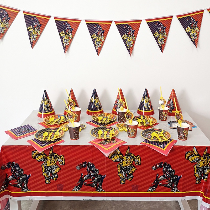 Transformers Bumblebee Optimus Prime Theme Party Decorations Paper Cup Plate Baby Shower Balloons Kids Birthday Party Supplies