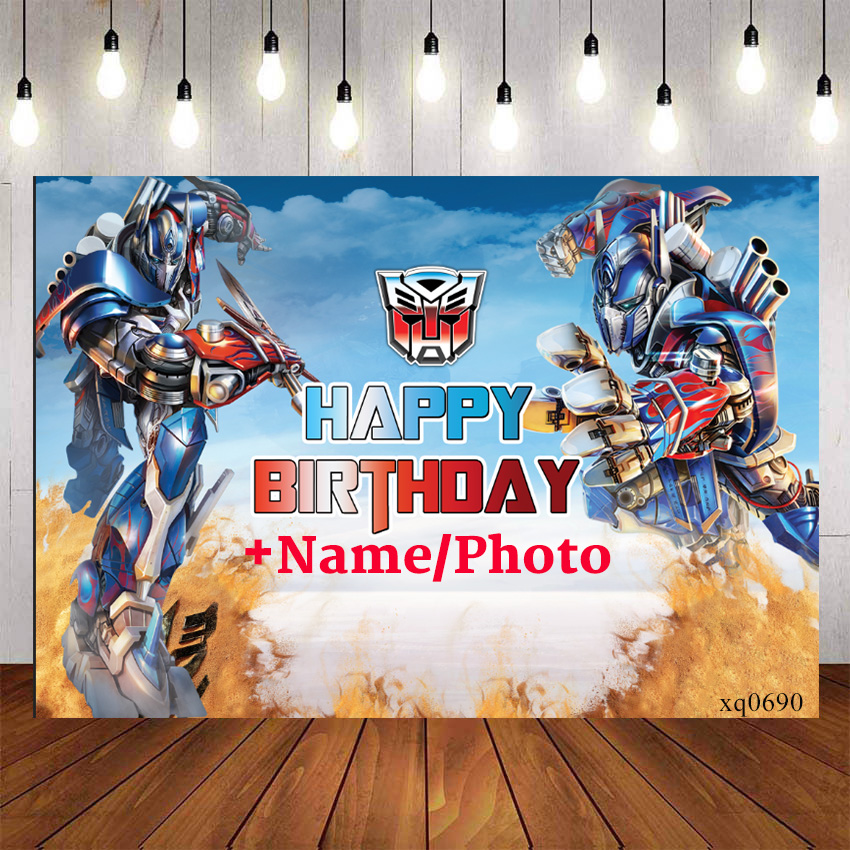 Transformers Optimus Prime Backdrop For Photography Baby Shower Kids Superheros Background Birthday Party Decor Custom Name Photo