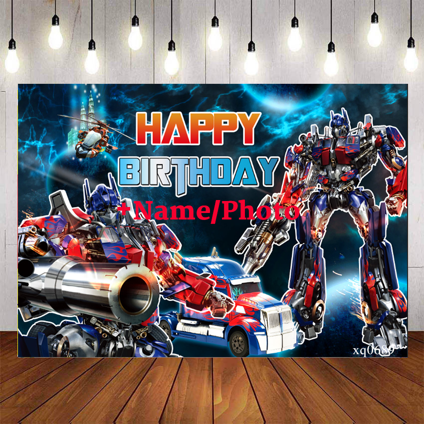 Transformers Optimus Prime Cars Backdrop For Photography Baby Shower Kids Superheros Background Birthday Party Decor Custom Name Photo