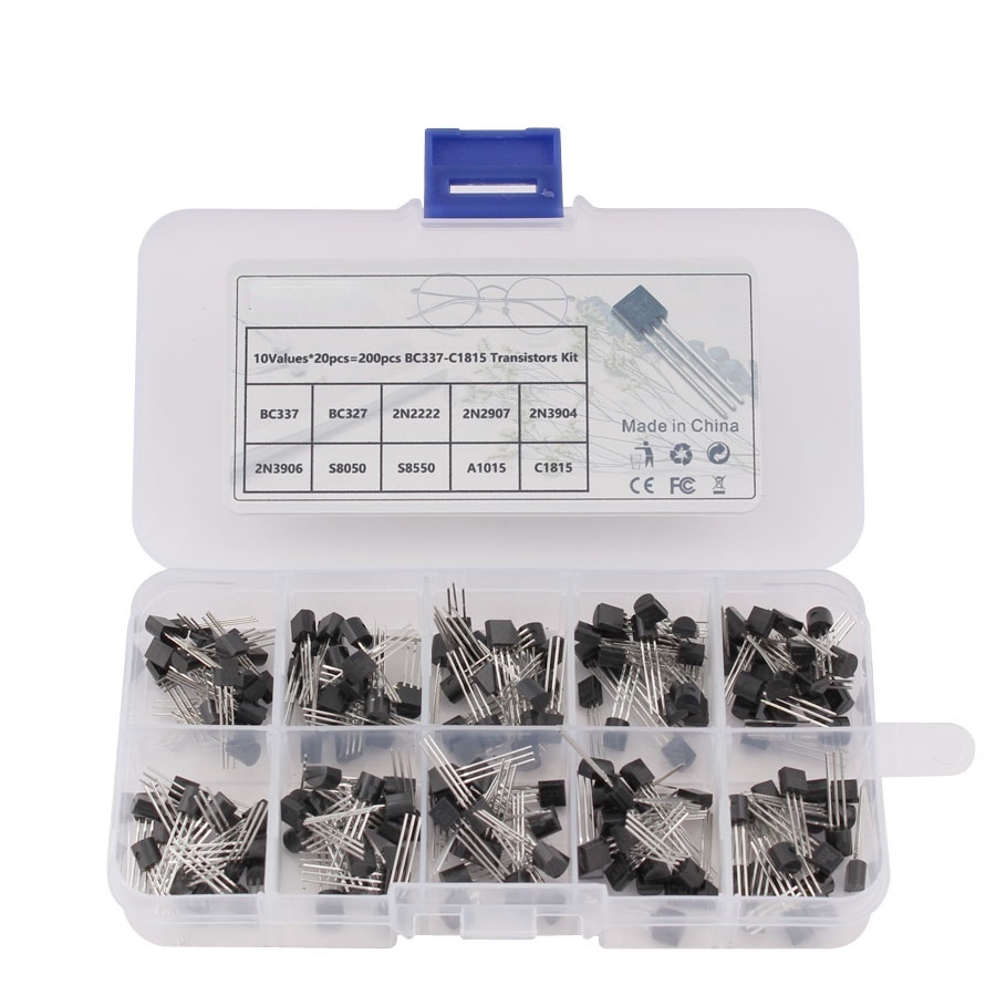 Transistor Set Kit 10 Values 200 Pcs TO-92 BC337 BC327 2N2222 2N2907 2N3904 2N3906 S8050 S8550 A1015 C1815
