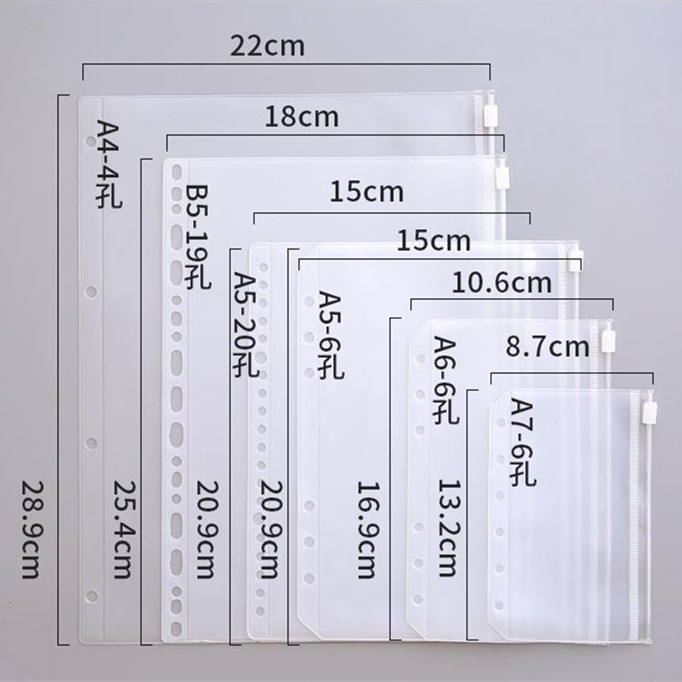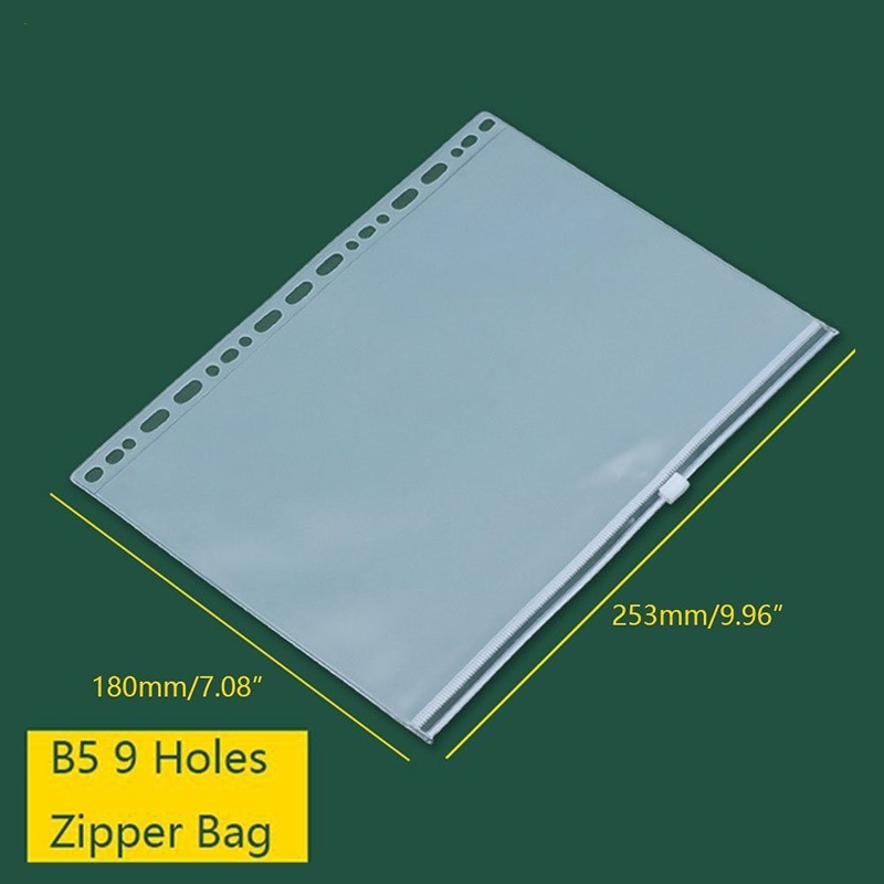 Transparent A5 A6 B5 Ring Binder Pockets Zip Envelope PVC Pouch Document Filing Bags Organizer