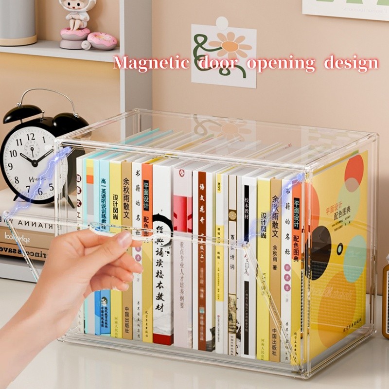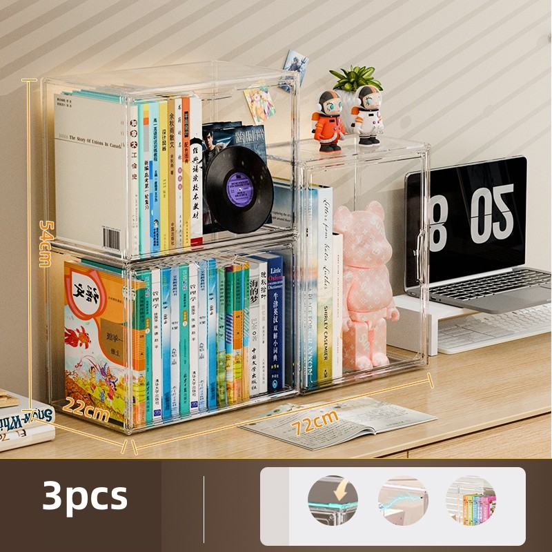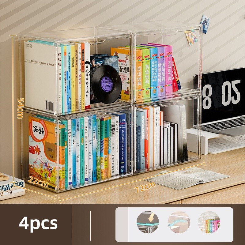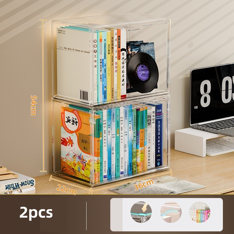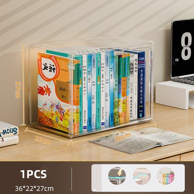Transparent Acrylic Book Storage Box large capacity bookshelf dust-proof Student Picture Bookcase