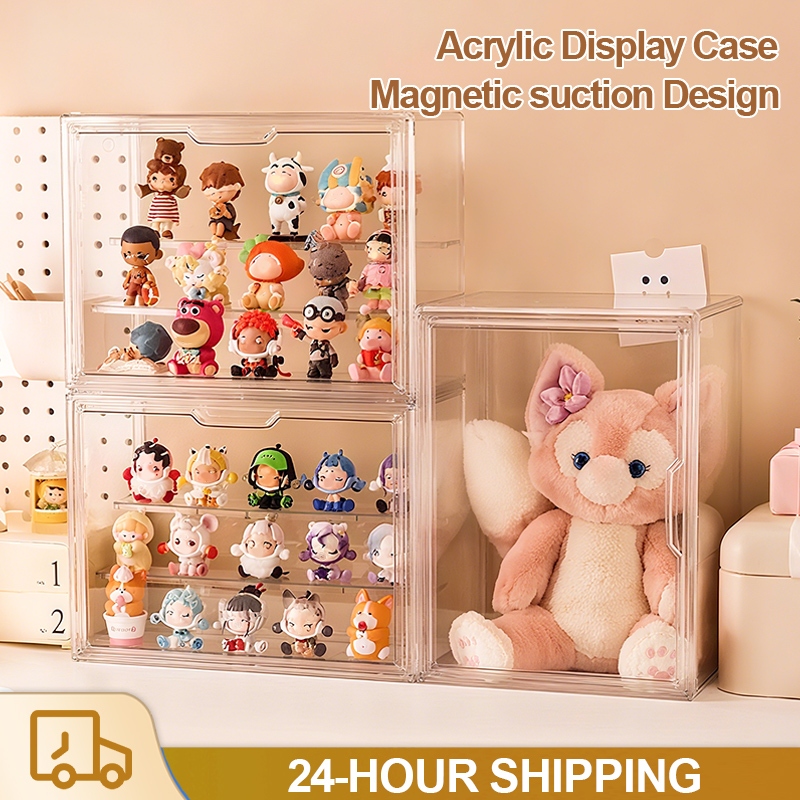 Transparent Acrylic Organizer Popmart Display Toy Storage Fully Transparent Organizer Stackable Case Box Magnetic Dustproof Handbag Storage