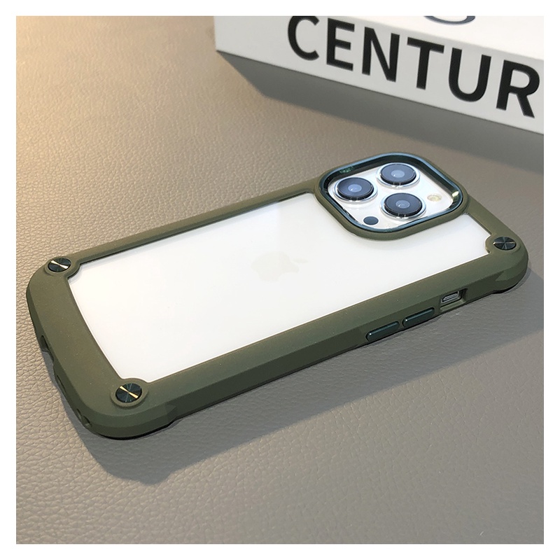 Transparent Back + Anti-fall Airbag iPhone Case With Metal Design For iPhone 15 14 13 12 11 Pro Max XS XR X 8 7 6 15 Plus + SE 2020 Clear Phone Casing Phone Cover