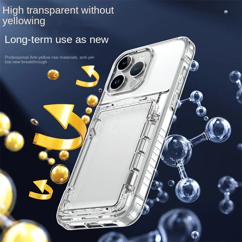 Transparent Card Slot Holder Bracket Phone Case For iPhone 17 Air 16 15 14 Plus 13 12 11 Pro Max Stand Shockproof Hard Acrylic Clear Cover