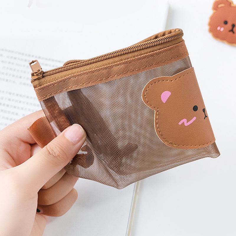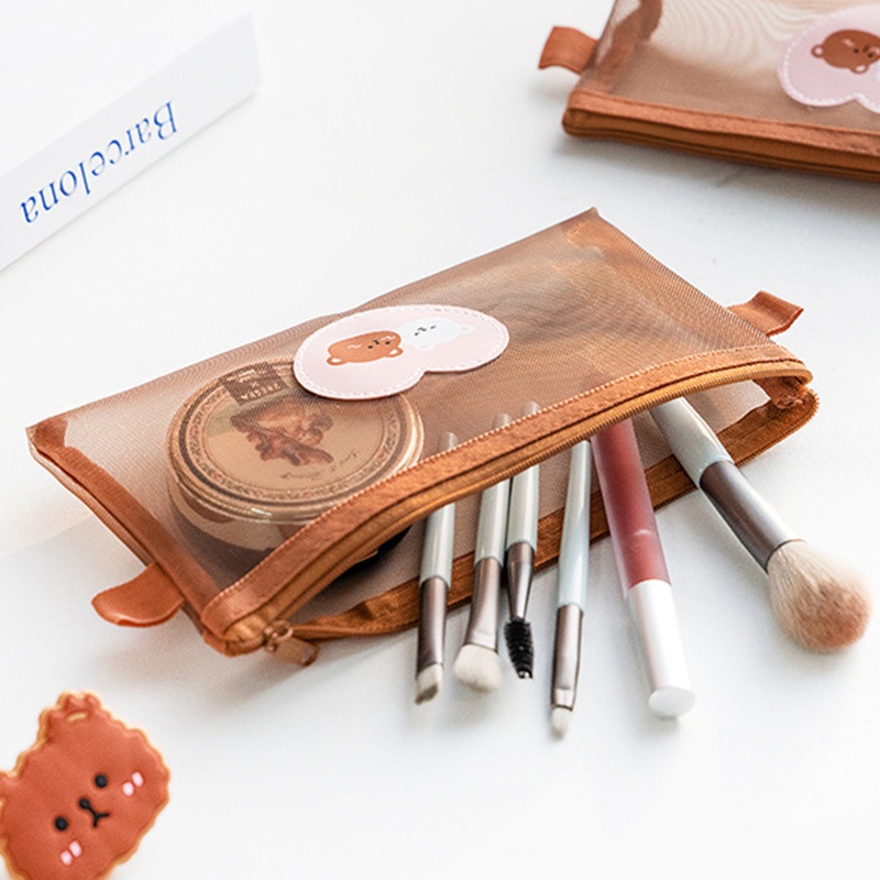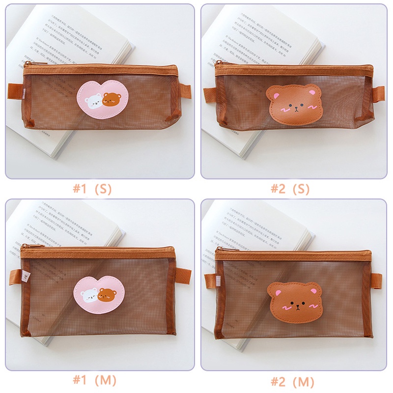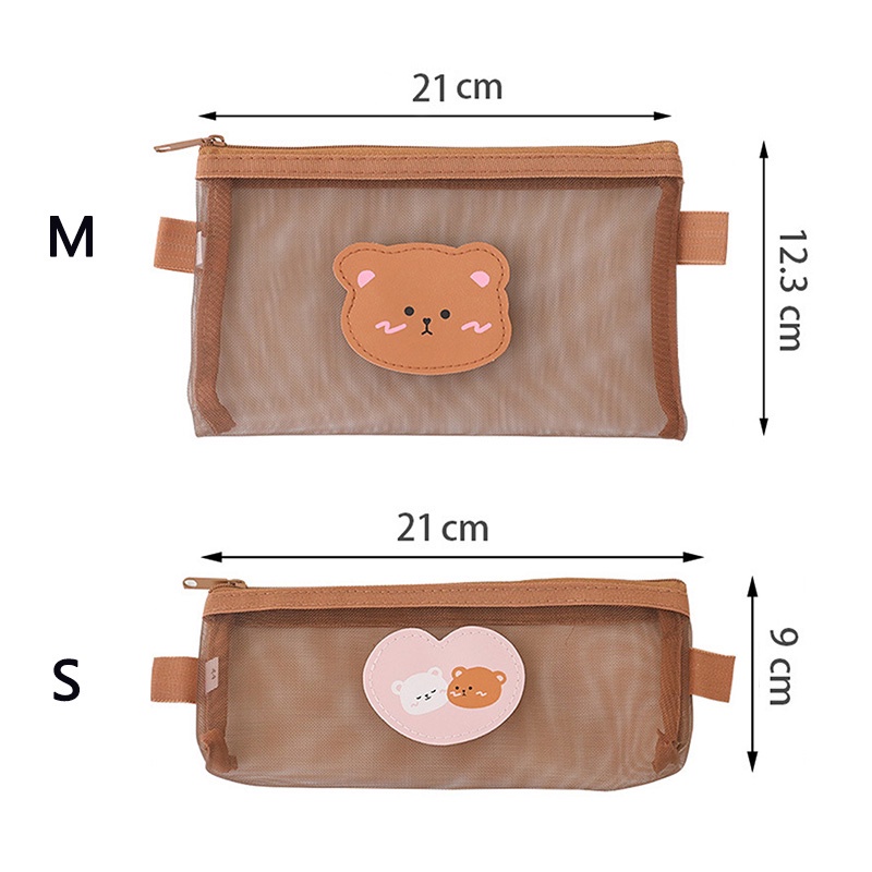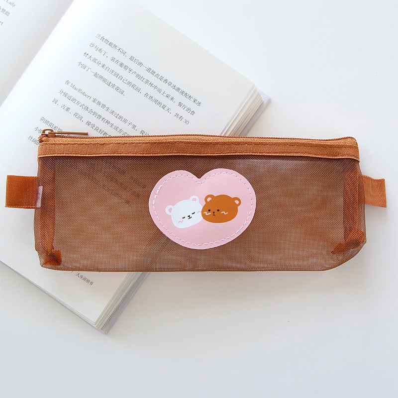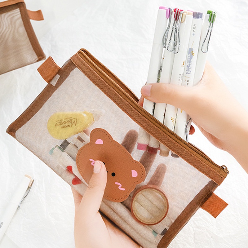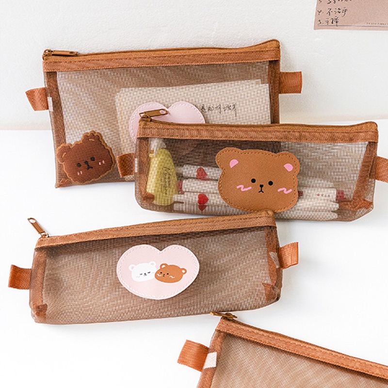 Transparent Cartoon Bear Series Mesh Pencil Case with Zipper Concise Cute Pencil Pouch