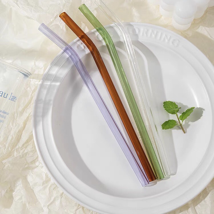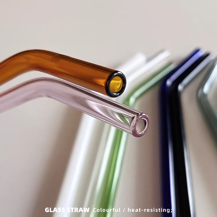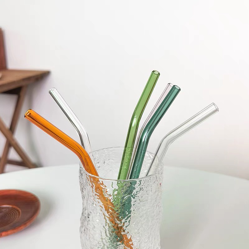 Transparent Colored Glass Bent Straws Reusable Straw Drinking Straw