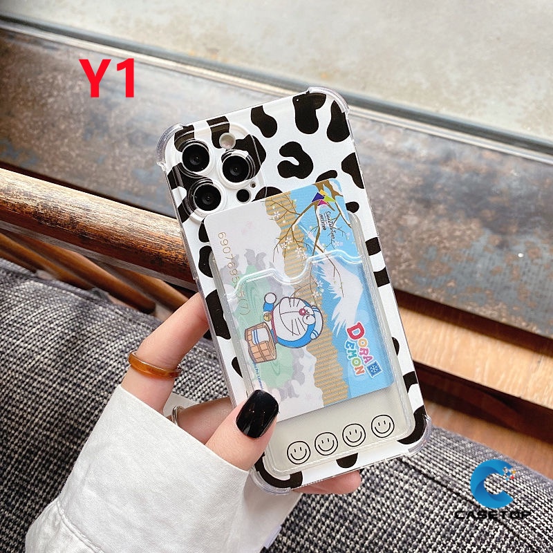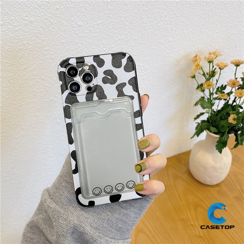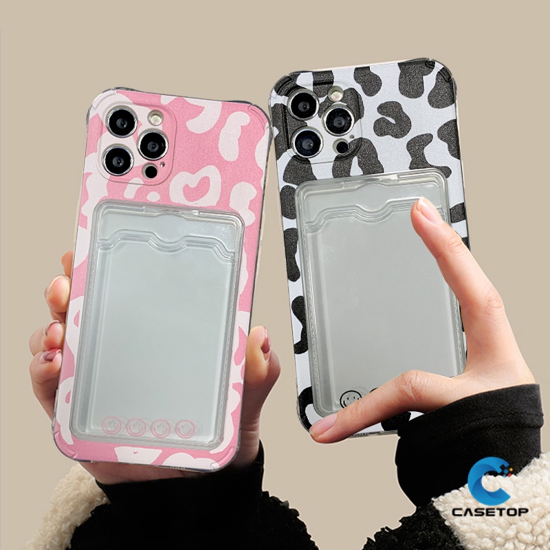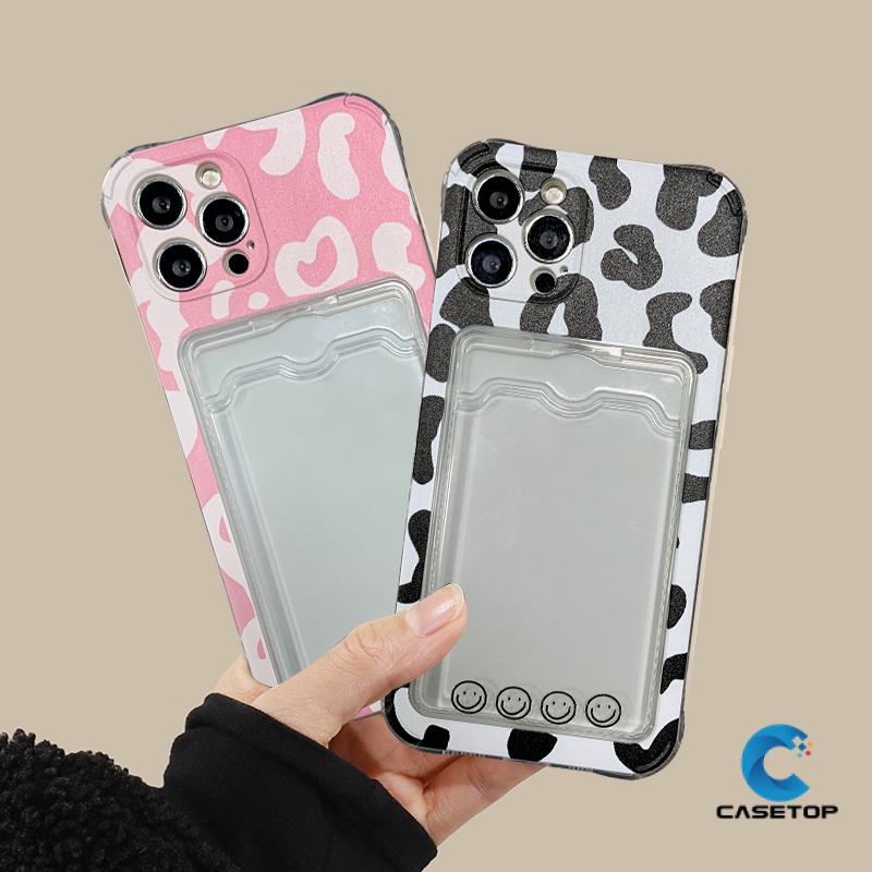 Transparent Couple Leopard Wallet Slot Case Oppo A15 A15S A76 A96 A9 A5 A11 A36 A54 A11k A12 A7 A74 A95 A16 A5s A35 Reno 8 Card Holder Soft Tpu Anti-fall Camera Protector Cover