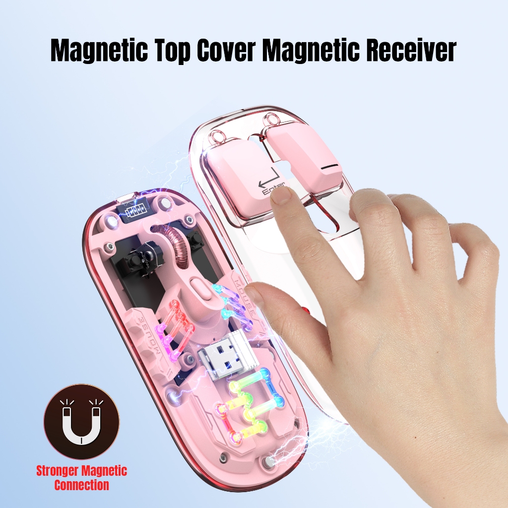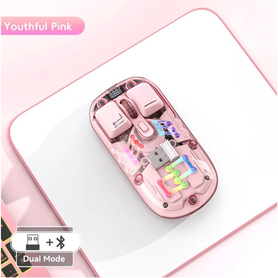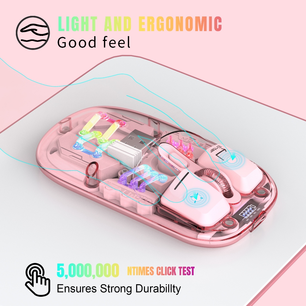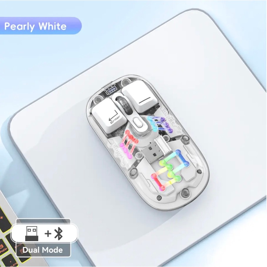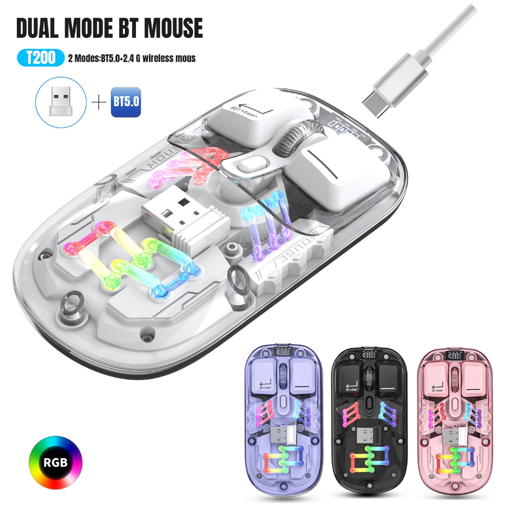 Transparent Dual-mode Wireless Mouse Built-in 400mAh Lithium RGB backlight Battery Office Mouse For PC and Notebook