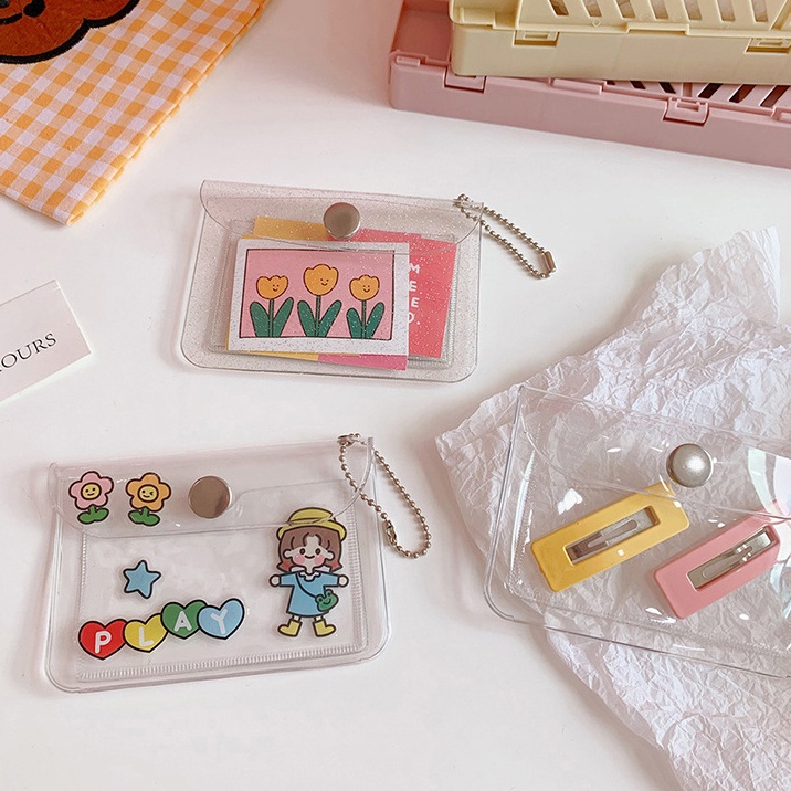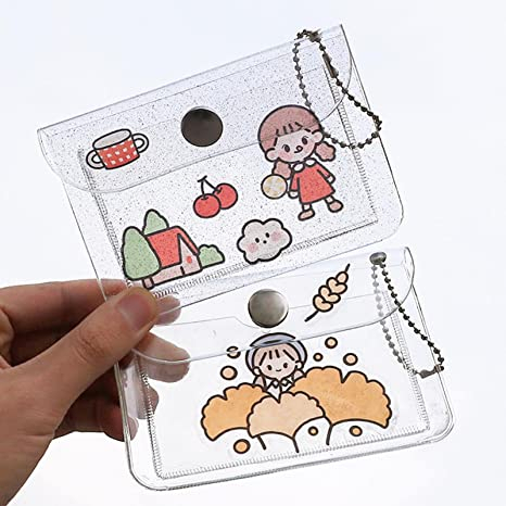 Transparent Glitter PVC Card Bag with Key Chain/Bank Cards ID Card Bags Protector
