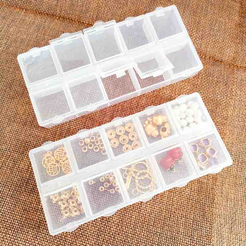 Transparent Jewelry Independent Open Lid Storage Box 10 Grids And 28 Compartments Plastic Rectangular DIY Sub-Packing Bulk
