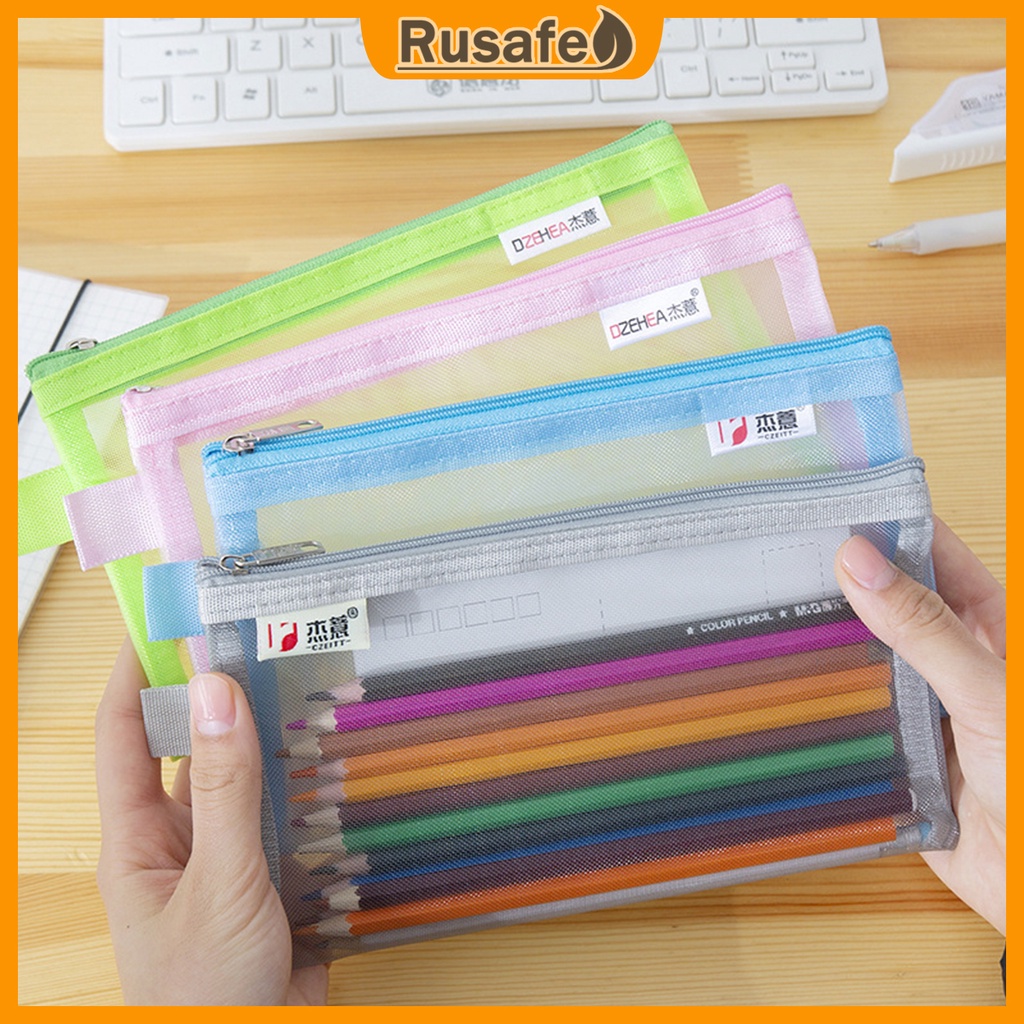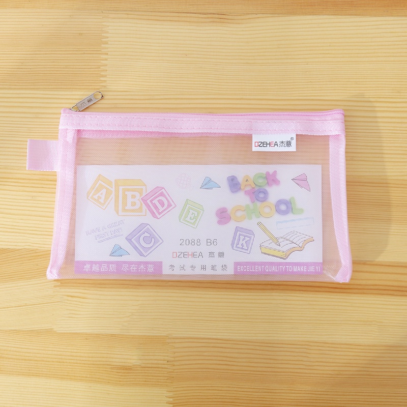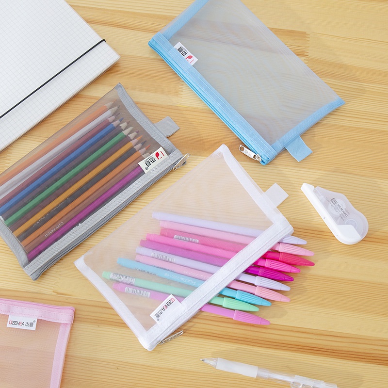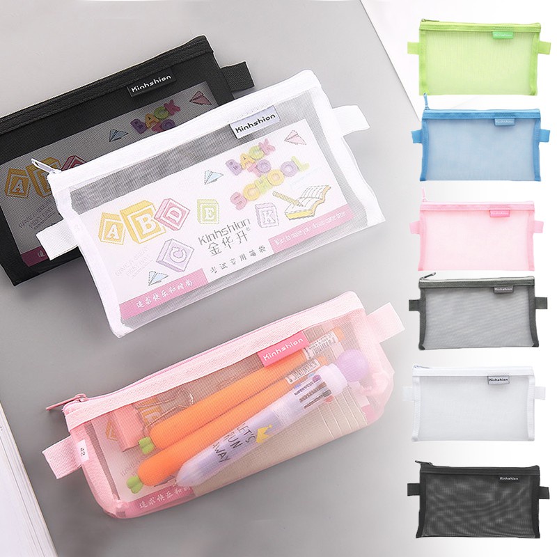 Transparent Mesh Pencil Case Office School Pencil Case Simple Portable Storage Bag with Zipper