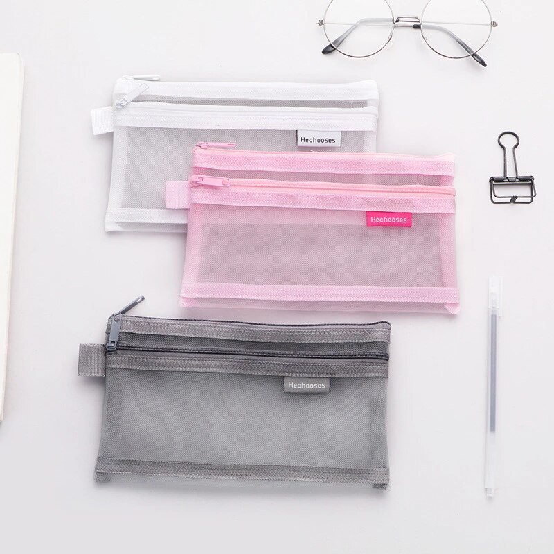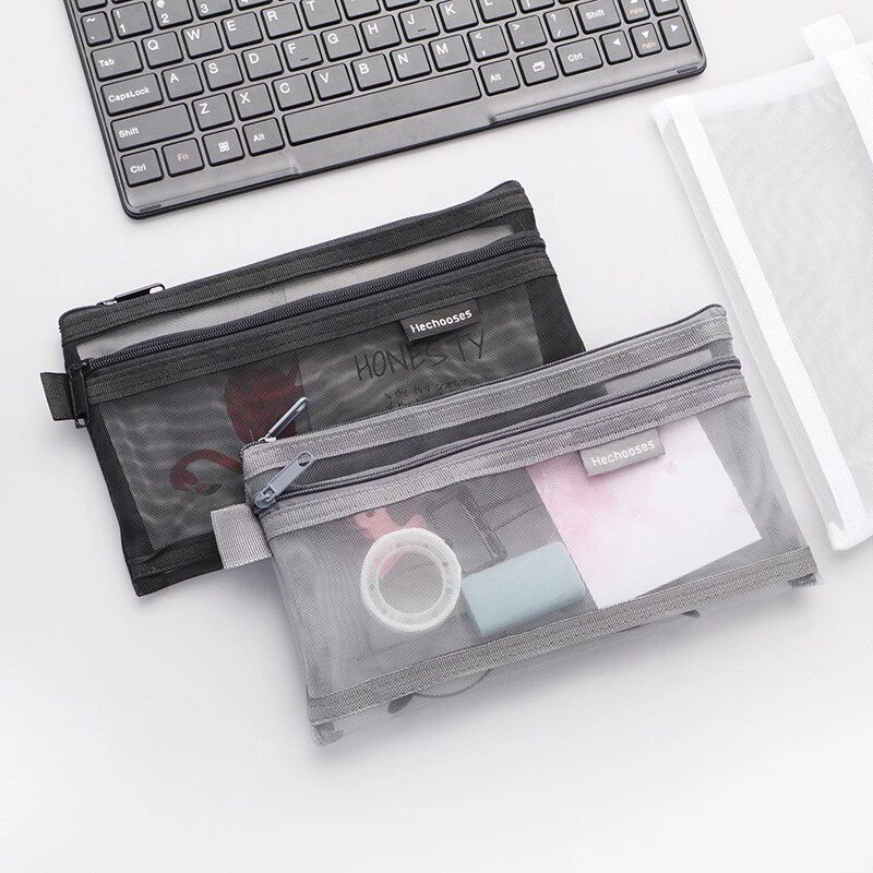 Transparent Mesh Pencil Case Pen Box Round Stlye And Double Zip Pencil Case Office School Supplies