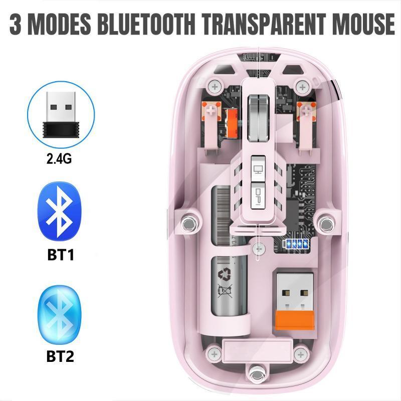 Transparent Mouse RGB Luminous Wireless Bluetooth Thr -mode Rechargeable Game E-sports Mouse