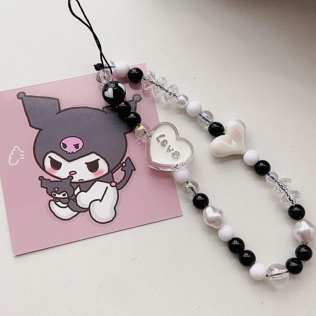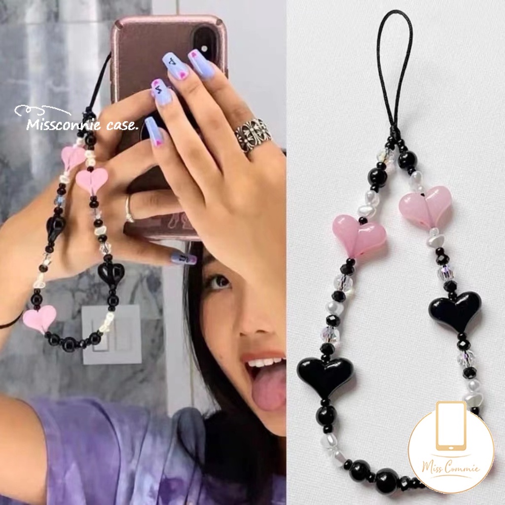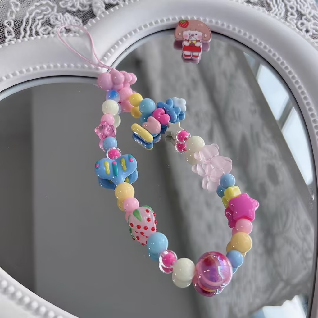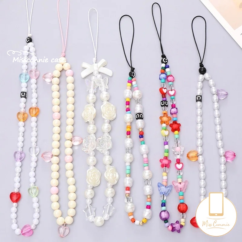 Transparent Pearl Mobile Phone Strap Beads Clear Butterfly Lanyard for Keys Bow Knot Wrist Phone Charm Anti Lost Cute Love Heart Cellphone Chain