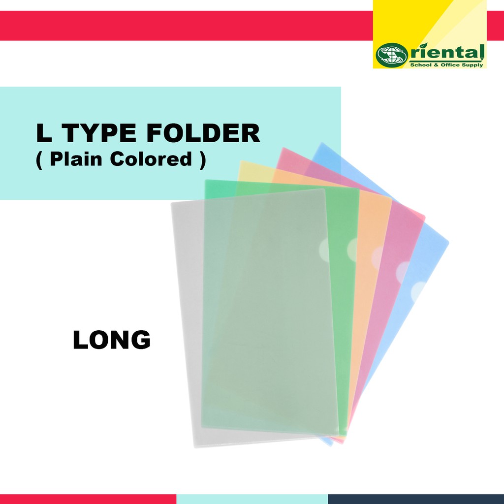 Transparent Plastic L-Type Folder - in Different Colors and Sizes - Sold per piece