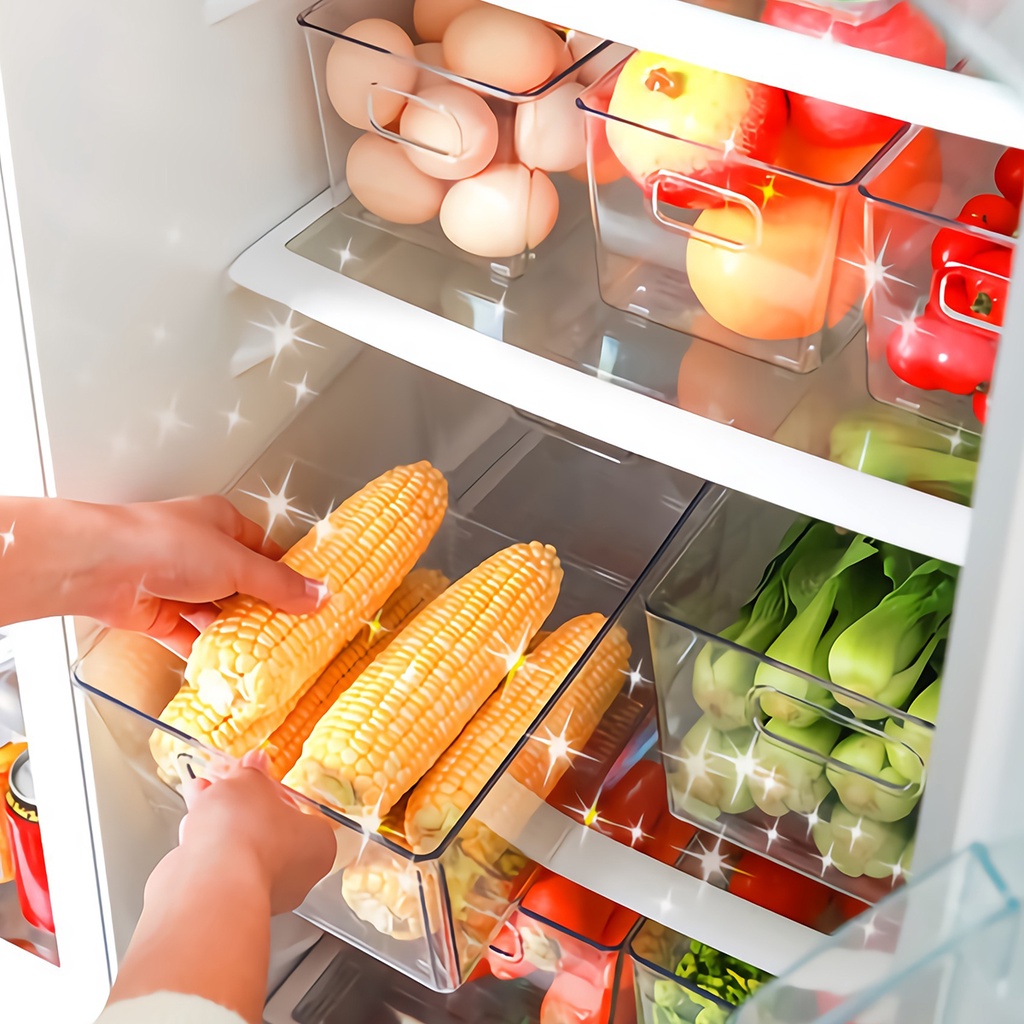 Transparent Refrigerator Storage Box With Handle Food Storage Box Rectangular Shape Safe Food Grade