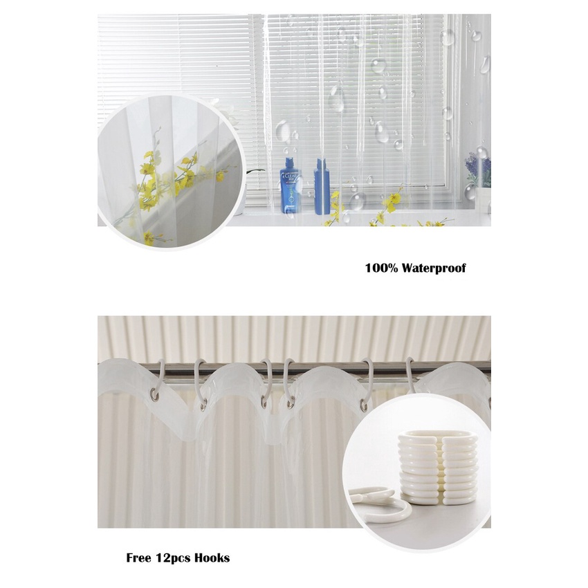 Transparent Shower Curtain Waterproof Clear White PEVA Bath Curtains Liner for Bathroom Mildew Home Hotel with Hooks