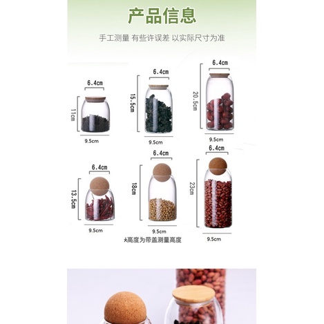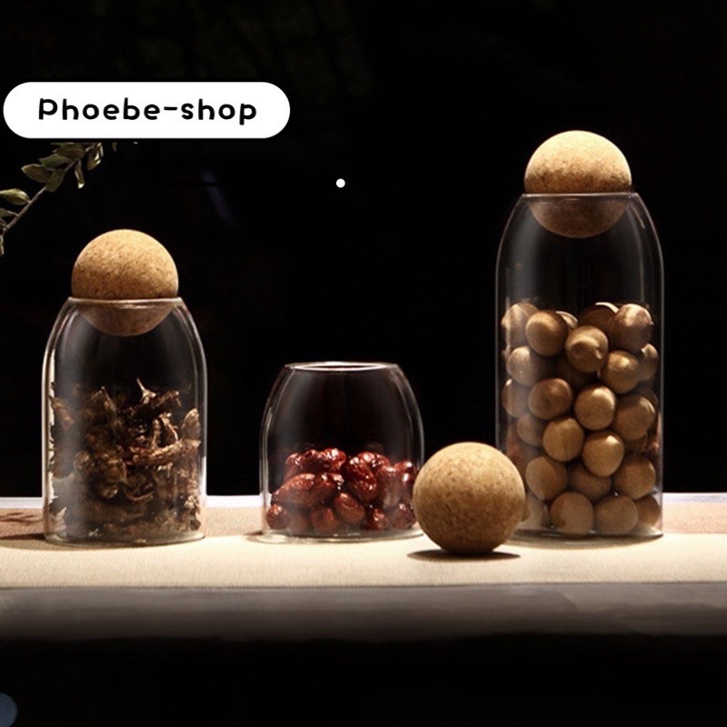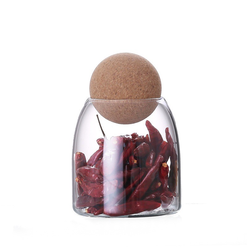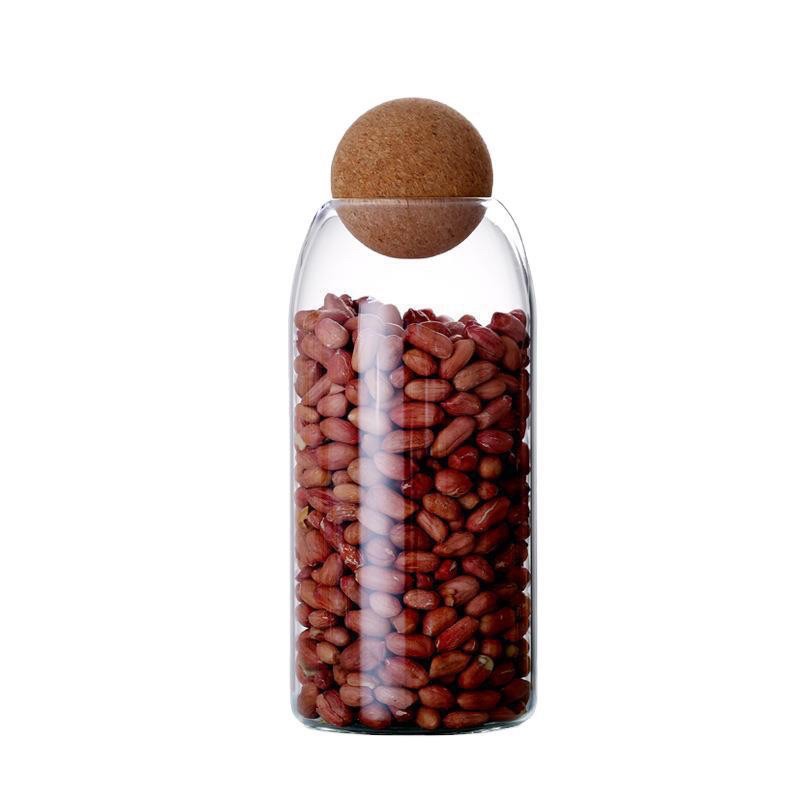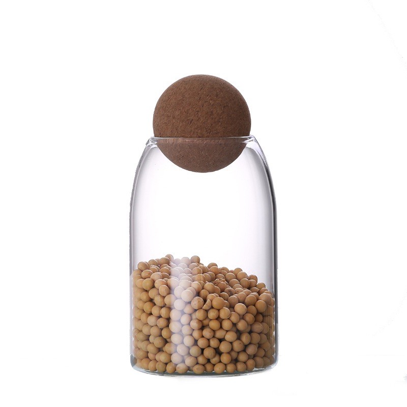 Transparent glass storage tank rack, ball wood cork top, modern decorative round bottle jar with round lid