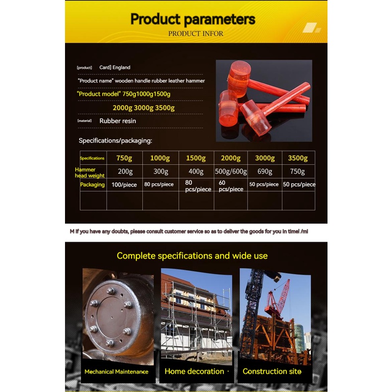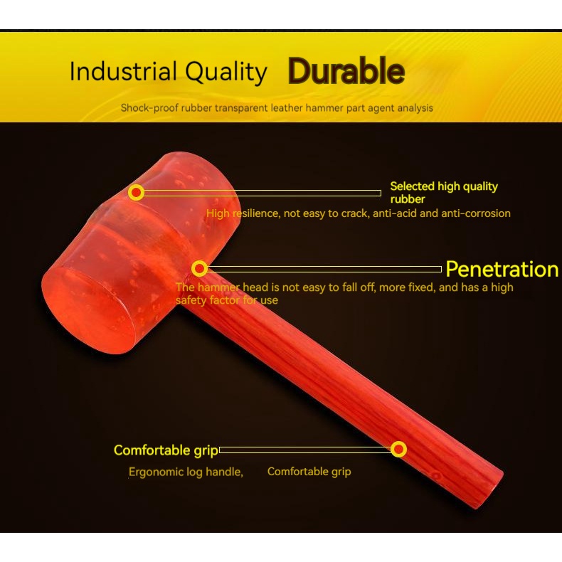 Transparent rubber hammer/Wooden handle rubber hammer/shockproof rubber hammer/transparent rubber ha