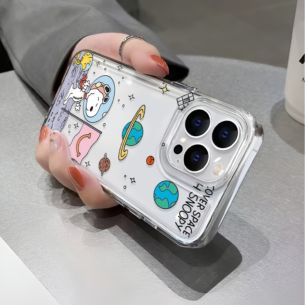 Transparent space case for iphone 15 pro max 14 11 13 12 7 8 Plus X XR XSMax Fashion Snoopy Space cover
