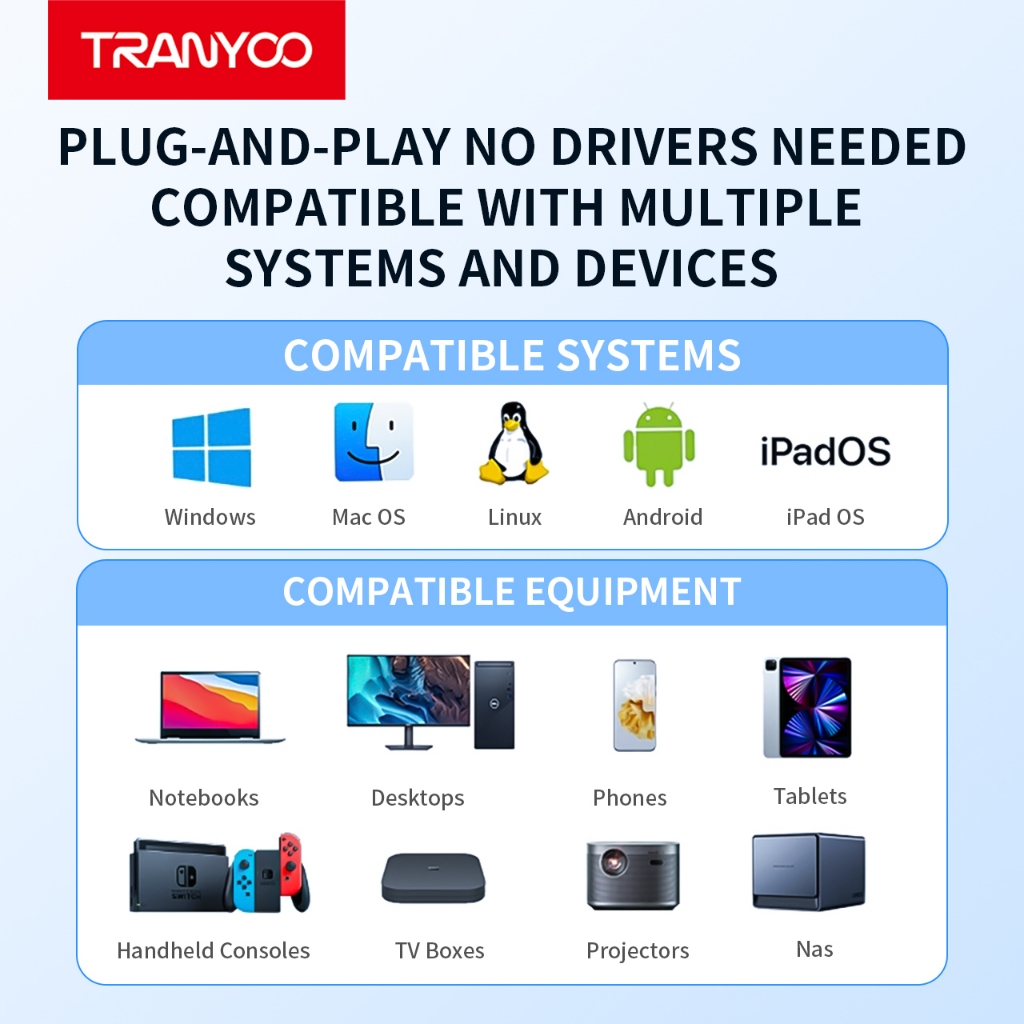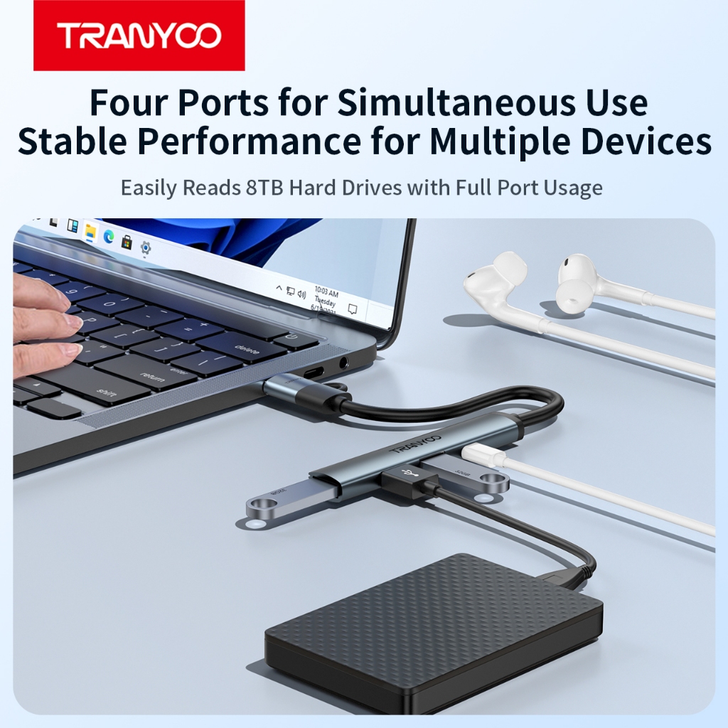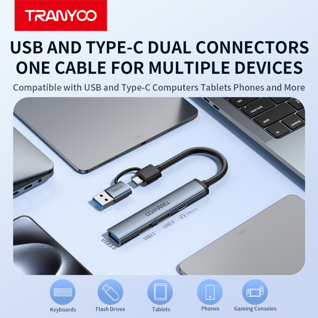 Tranyoo HB11-AC 4-in-1 Hub USB/Type-C to 3 USB3.0 and Type-C Port Hub for Mobile Phones and Tablets