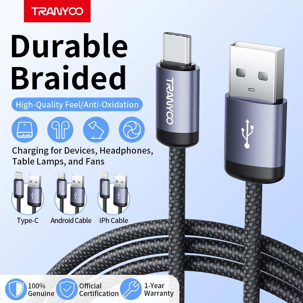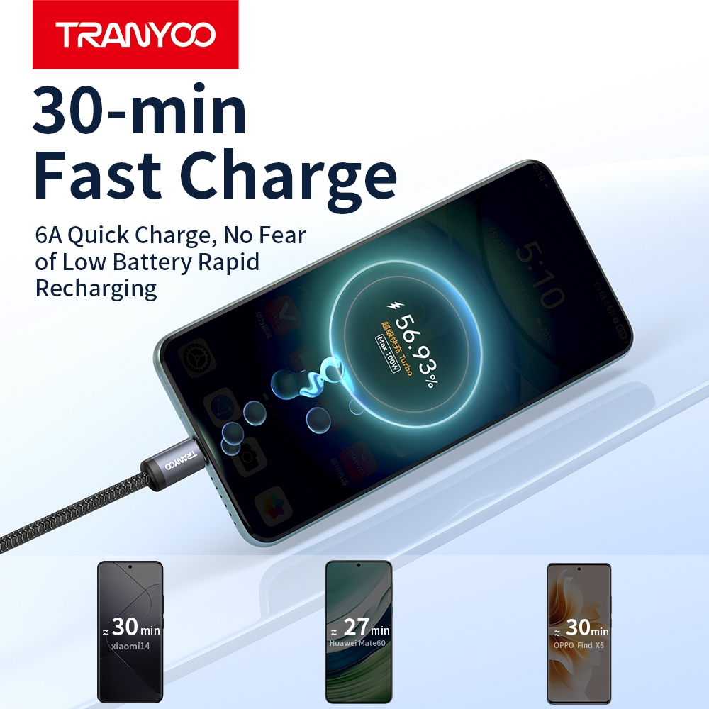 Tranyoo S20 Data Cable 6A 1M Fast Charging Length for Micro /iPh /Type-C Data Transfer Cable