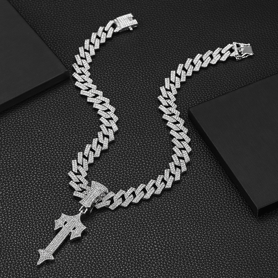 Trapstar T-Shaped Pendant Necklace with 15mm Diamond Cuban Link Chain P001