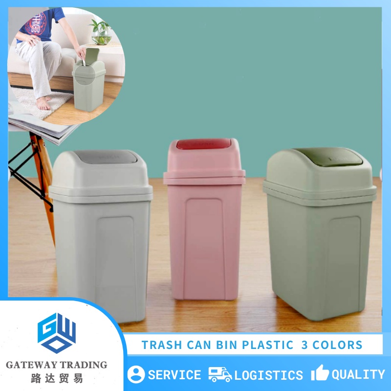 Trash Can with Swing Lid ,Plastic Swing Top Trash Can 3 Colors