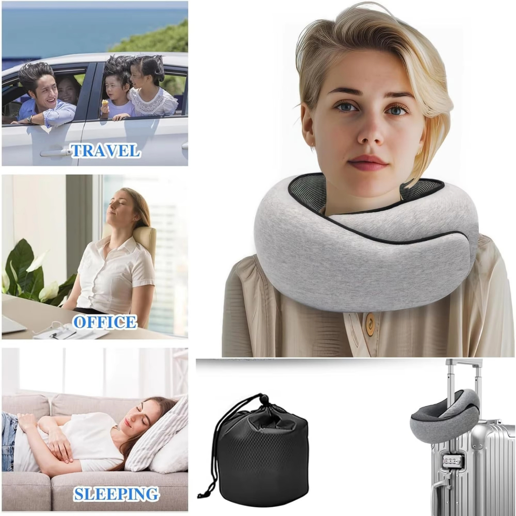 Travel Neck Pillow Memory Foam U-shaped Pillow Snail Style Travel Neck Support Portable Adjustable S