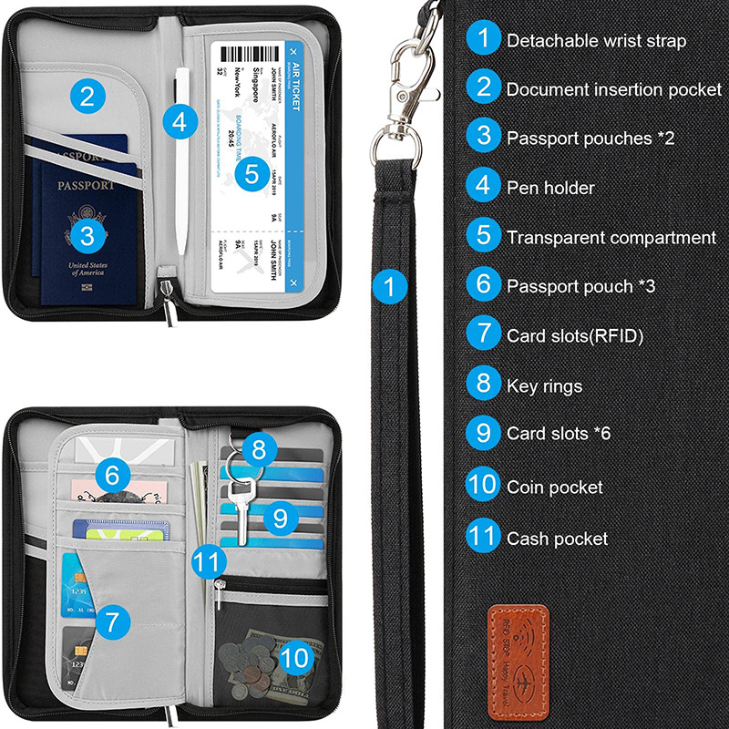 Travel Wallet Family Passport Holder Travel Documents Organizer Durable waterproof Passport Case with RFID Blocker for Men Women ko261