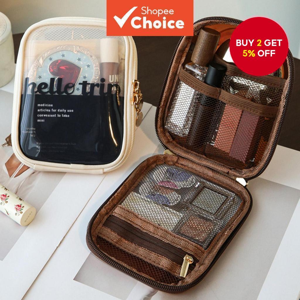 Travel cosmetic organizer, 1 Piece Coffe White Black Pink Color Transparent PVC Material Portable Waterproof Multi-compartment Compact Makeup Pouch
