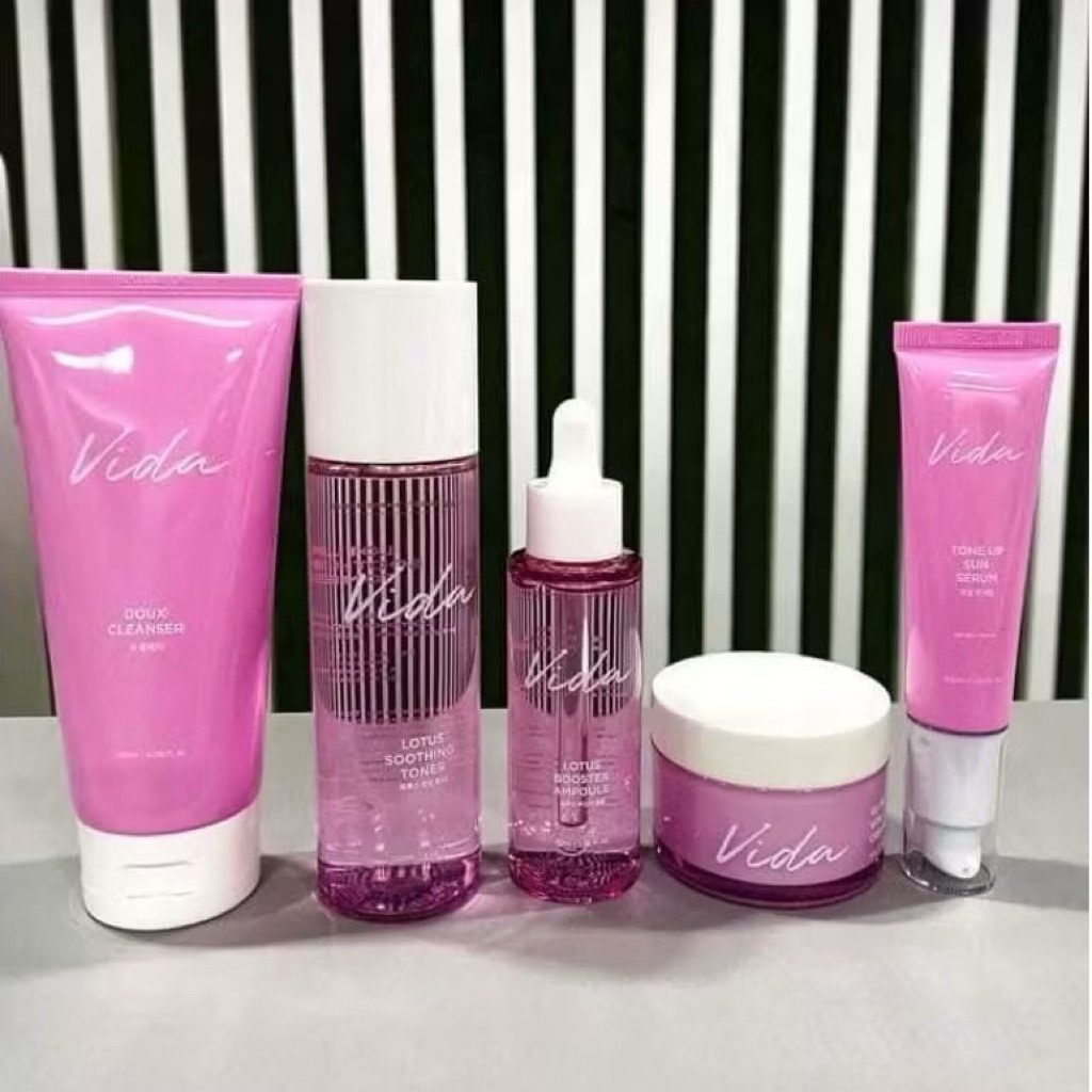 VIDA KOREAN SKIN CARE SET, CLEANSER, BOOSTER AMPOULE, VITA CREAM, SOOTHING TONER, SUN SERUM
