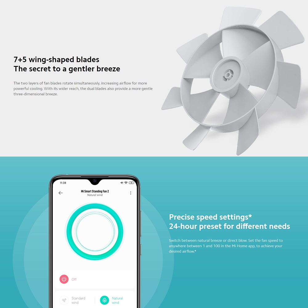 Xiaomi Smart Standing Fan 2 Natural Breeze-Simulating Dual Blades DC Inverter Stand Fan for Home