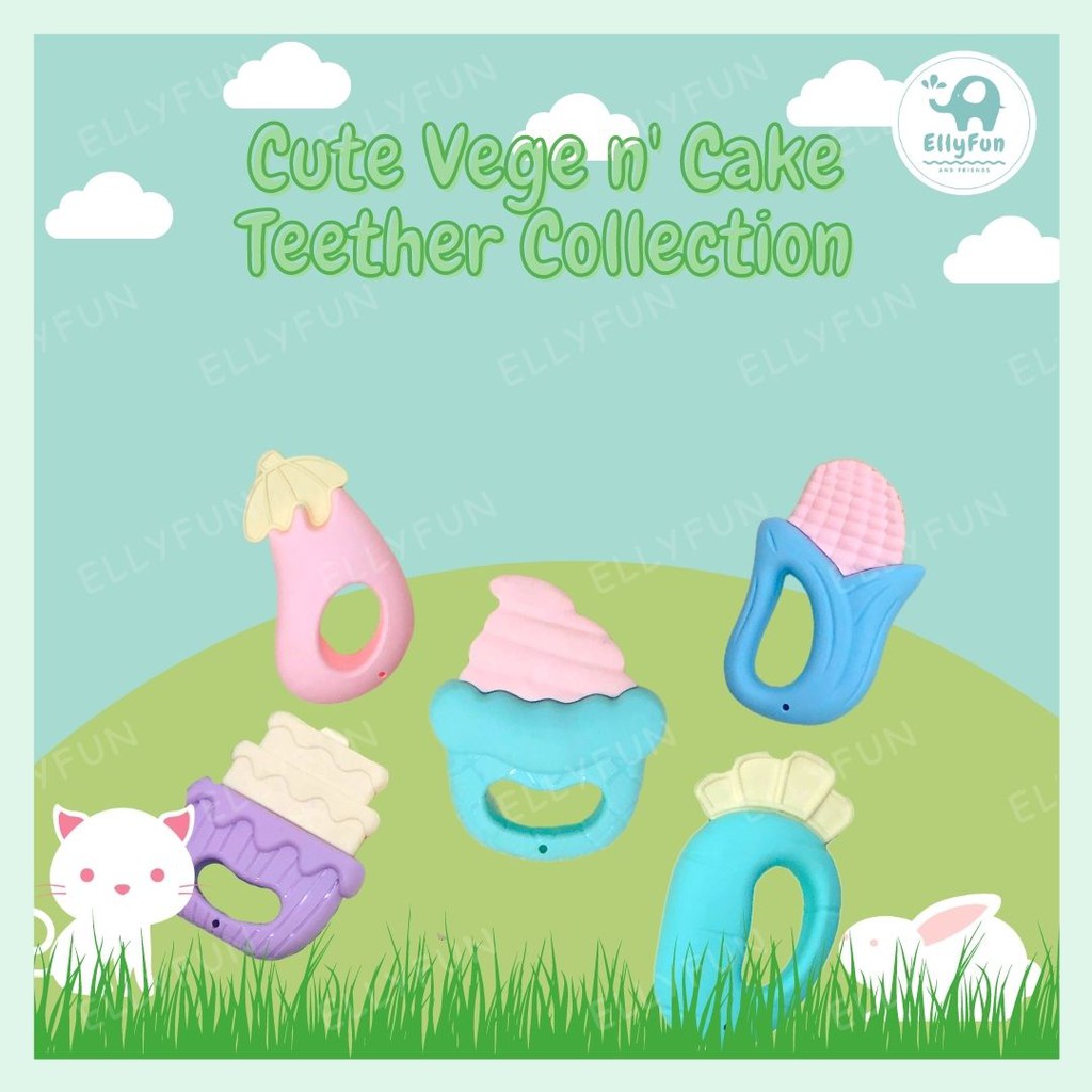 Ellyfun Cute Silicon vegetable, Cake & baby bottle teether baby teething Chew toys BT0068-79