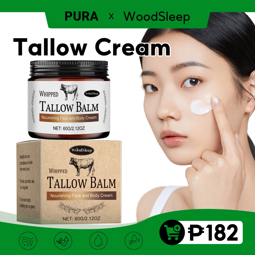 WoodSleep Whipped Tallow Cream 60g Beef Tallow Moisturizer Lightening Nourishing Rejuvenating Skin